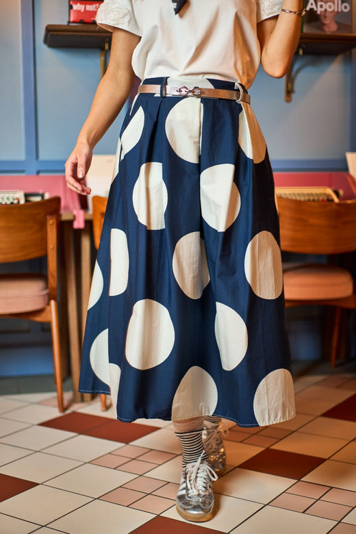 Reguljära kjolar i klassiska snitt är mångsidiga basplagg som fungerar till det mesta, medan kjolar med slits tillför en modern twist och extra rörelsefrihet. Manchesterkjolar ger en retrokänsla med sin strukturerade yta, och vintagekjolar med särskilda tryck och mönster skapar en personlig och konstnärlig look. Vissa modeller har grafiska tryck med stadsmotiv eller cirkulära mönster i botten som ger en trendig touch.