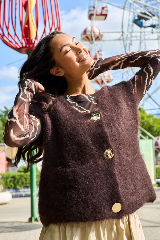 En svart stickad väst för damer är en tidlös och mångsidig klädesplagg. Den kan stylas på otaliga sätt. Använd den som ett elegant lager över en skjorta eller klänning, eller som en varm och bekväm jacka under kyliga dagar. Du kan även kombinera den med ett par jeans och sneakers för en mer avslappnad look. Upptäck vårt stora utbud av svarta stickade västar som passar för varje tillfälle.