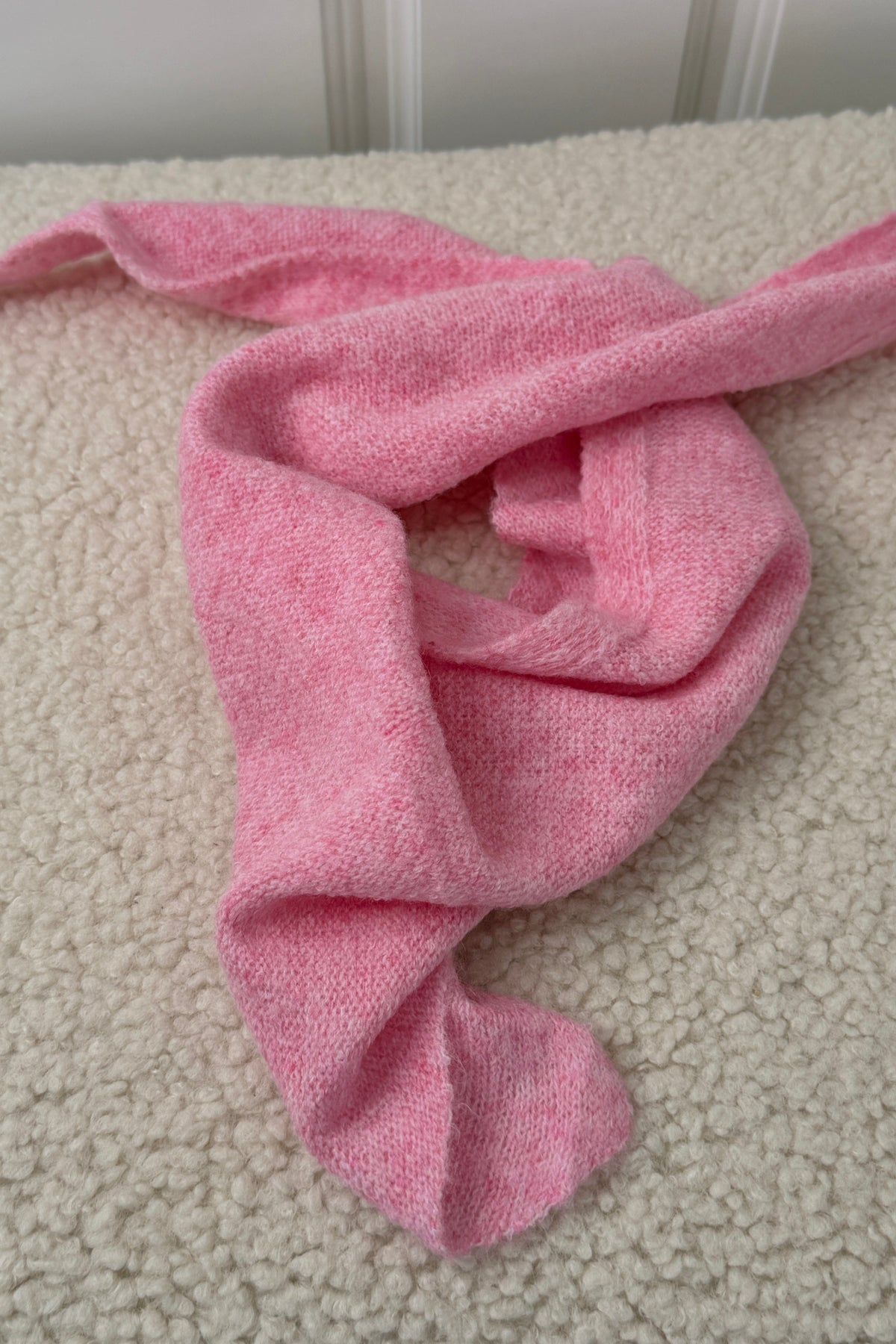 Rosa halsduk från A-bee, tillverkad av 80 % viskos och 20 % ull. Halsduken har en mjuk yta och en melerad struktur.