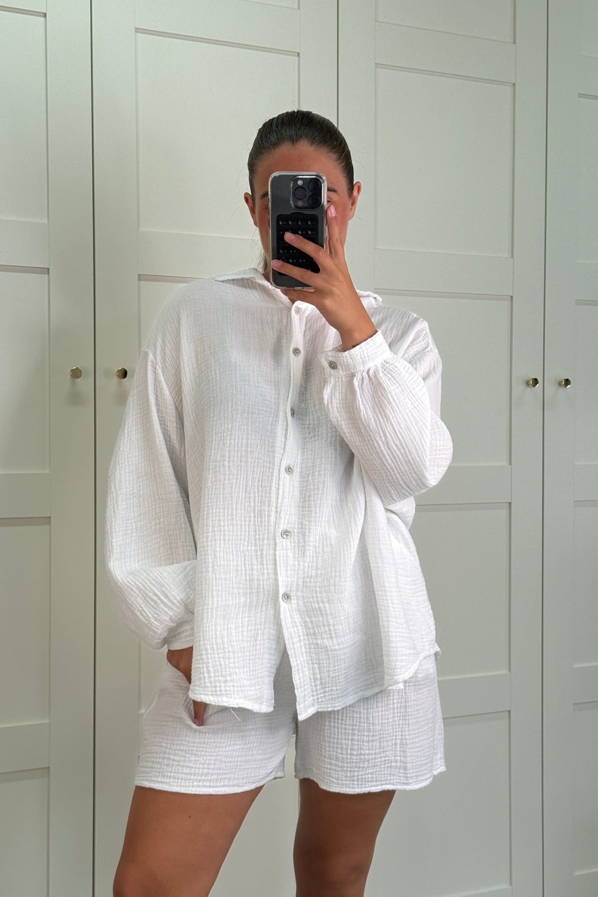 Vit skjorta från A-bee i 100 % bomull. Skjortan har en avslappnad passform med bindebandsdetalj som ger möjlighet till olika bärsätt.