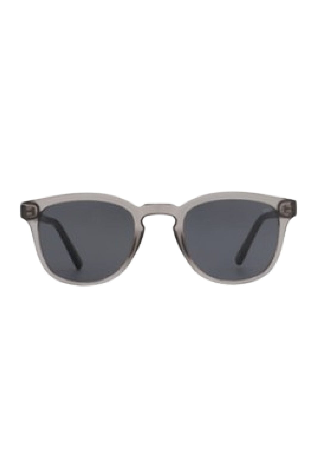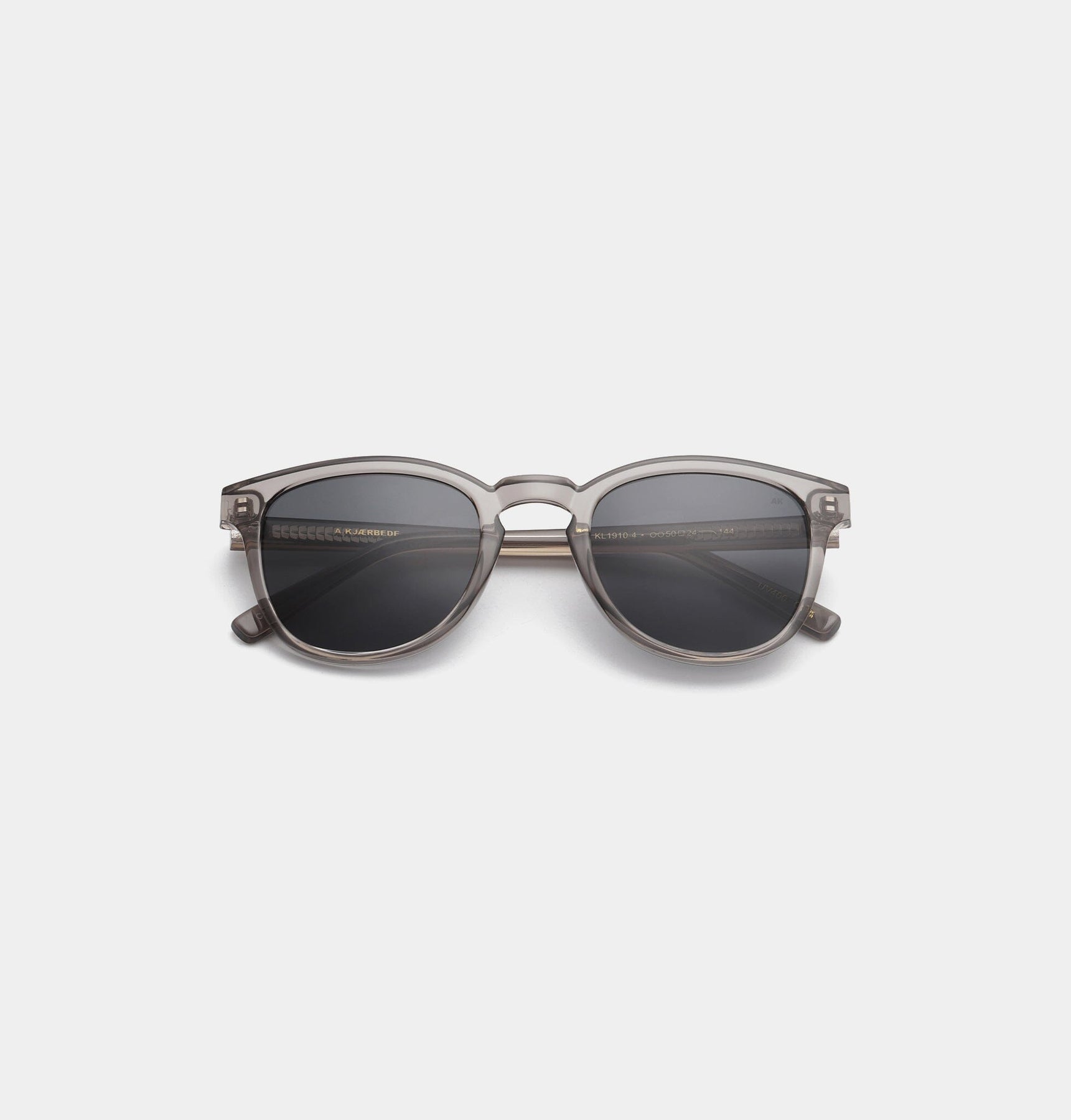 Grå transparenta solglasögon från A. Kjærbede med rektangulär form och kattöga-design. Ramen är tillverkad av polykarbonat, vilket gör glasögonen lätta att bära.