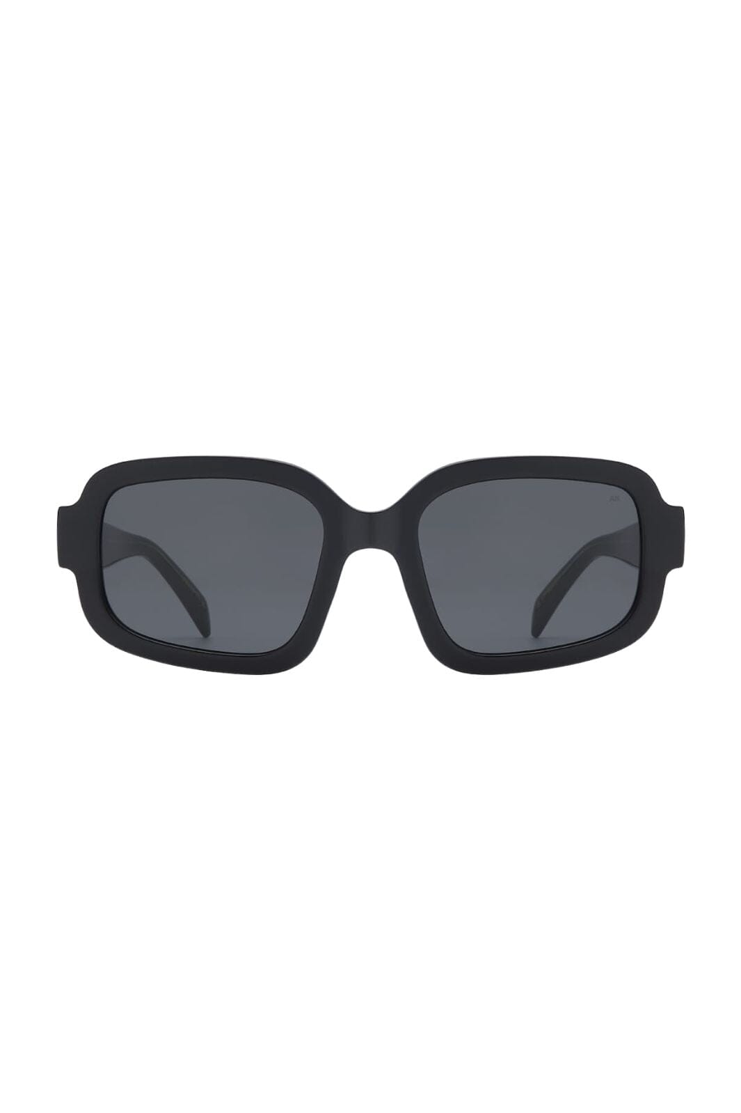 Svarta solglasögon från A. Kjærbede med rektangulär ram. Ramen har kraftiga linjer med mjuka kurvor, och de mörka linserna ger en vintagekänsla.