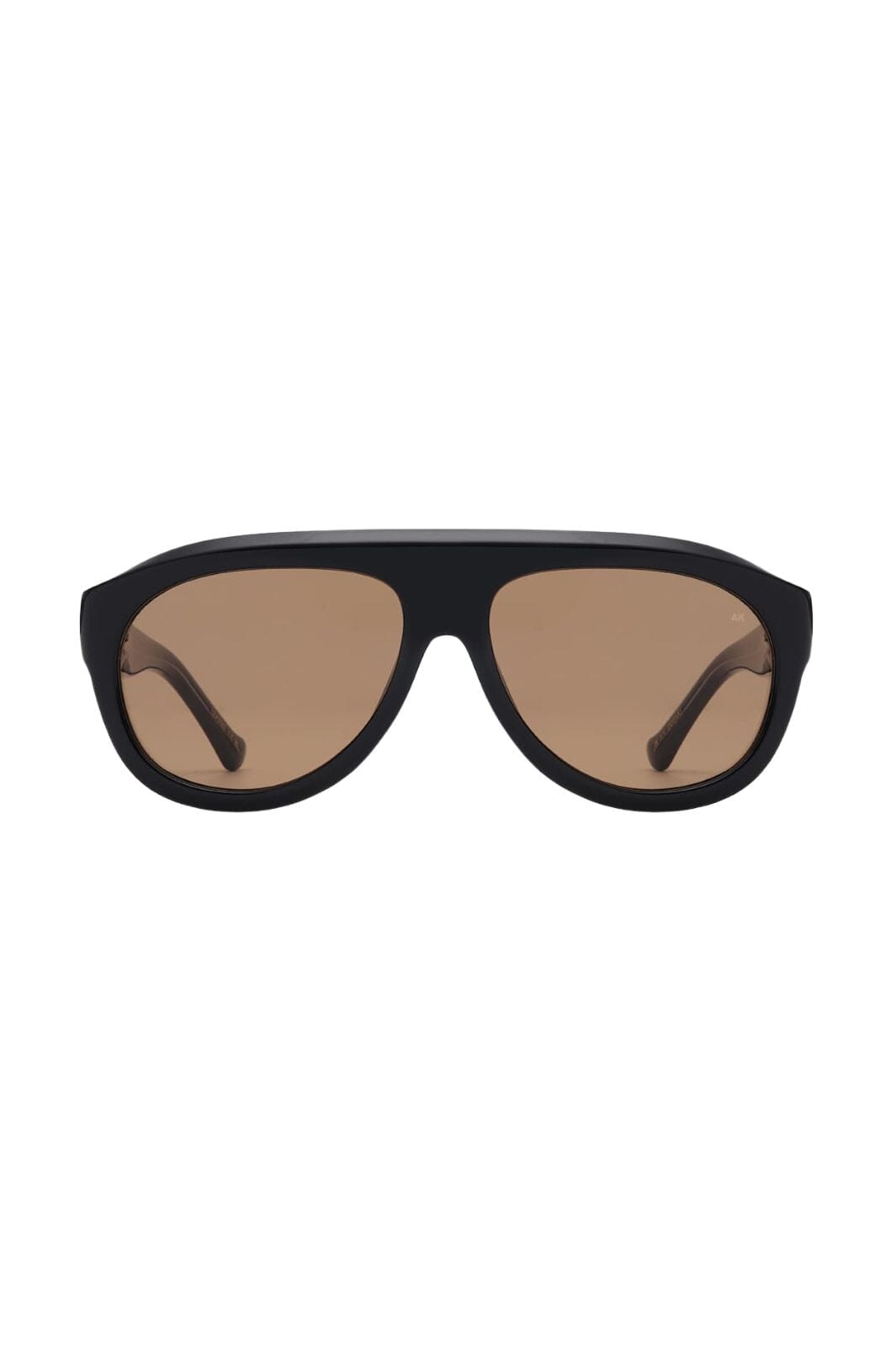Svarta solglasögon från A. Kjærbede med aviator-inspirerat båge. Glasögonen har en bred, skulpturerad form med bruna linser och en markant bro på 16 mm.