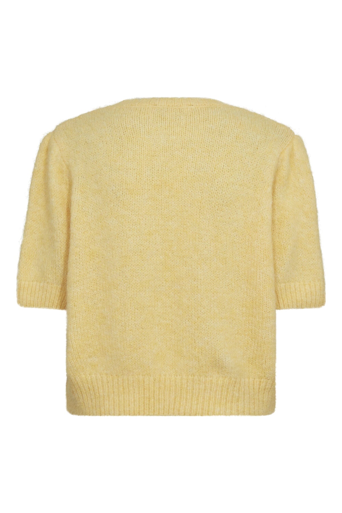 Kortärmad stickad tröja från A-View i ljusgul. Tröjan har rund halsringning och ribbade kanter vid ärmarna och nederkanten.