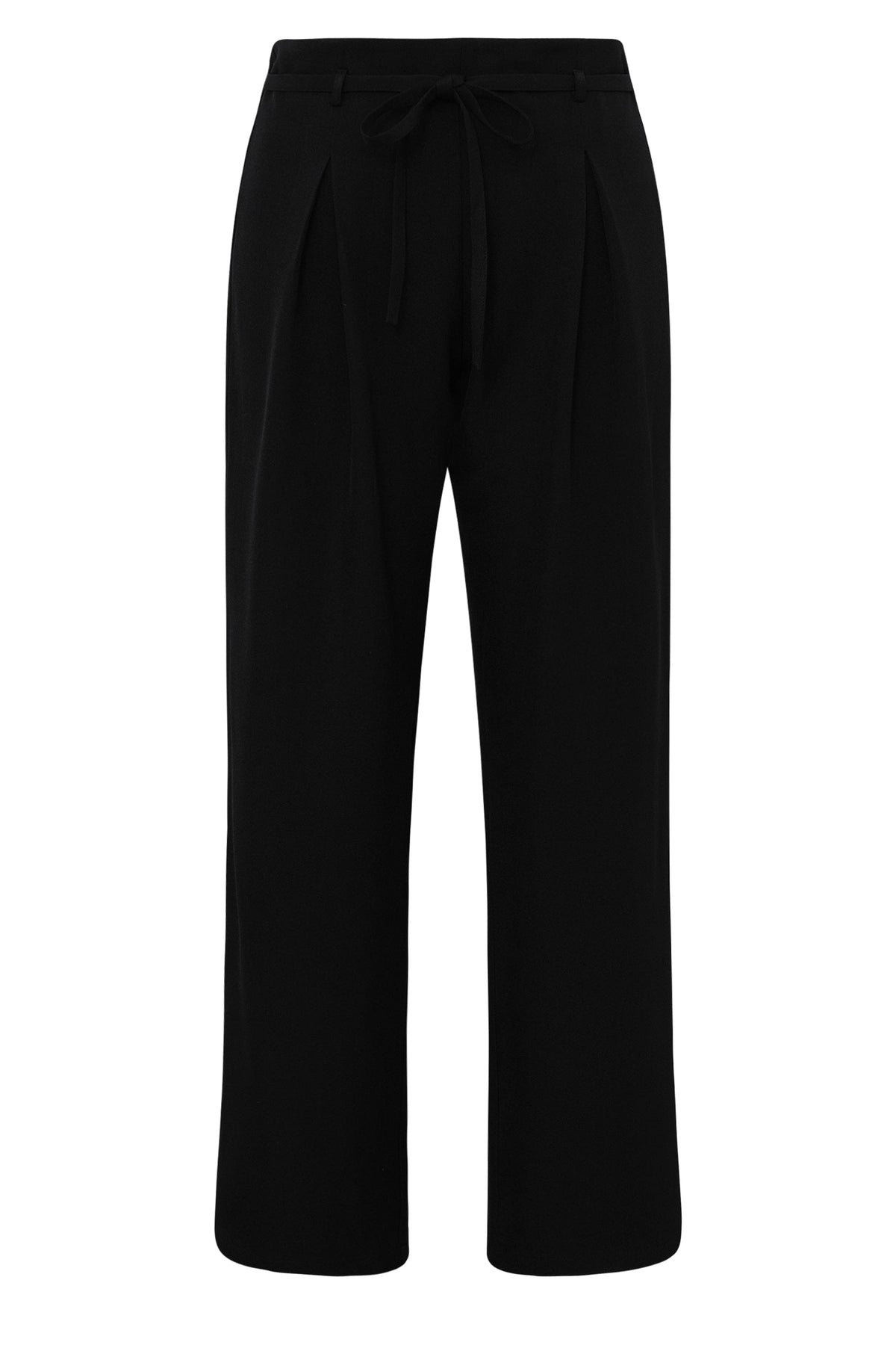 Juliette Pants är klassiska byxor med vida ben och frontveck. De har en vanlig knapp- och blixtlåsstängning samt ett avtagbart knytbälte i midjan för extra detaljer.