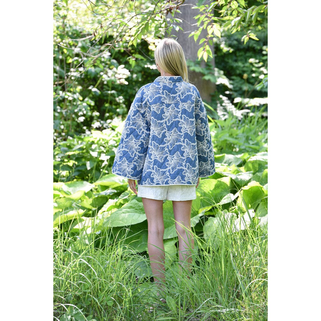 Blå jacka från A-View med offwhite blombroderi. Jackan har dekorativa sömmar och knytdetaljer som ger den ett handgjort uttryck.