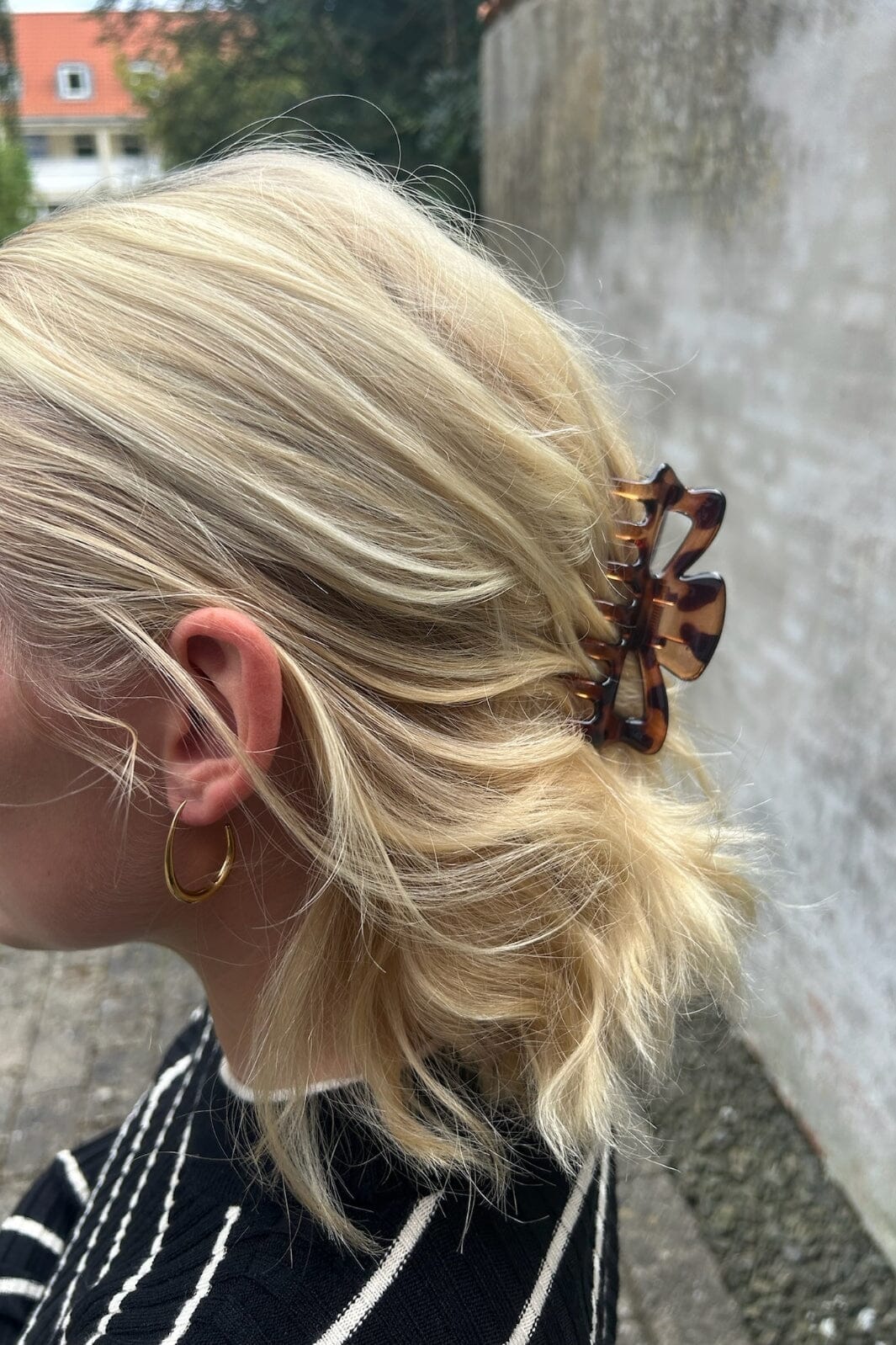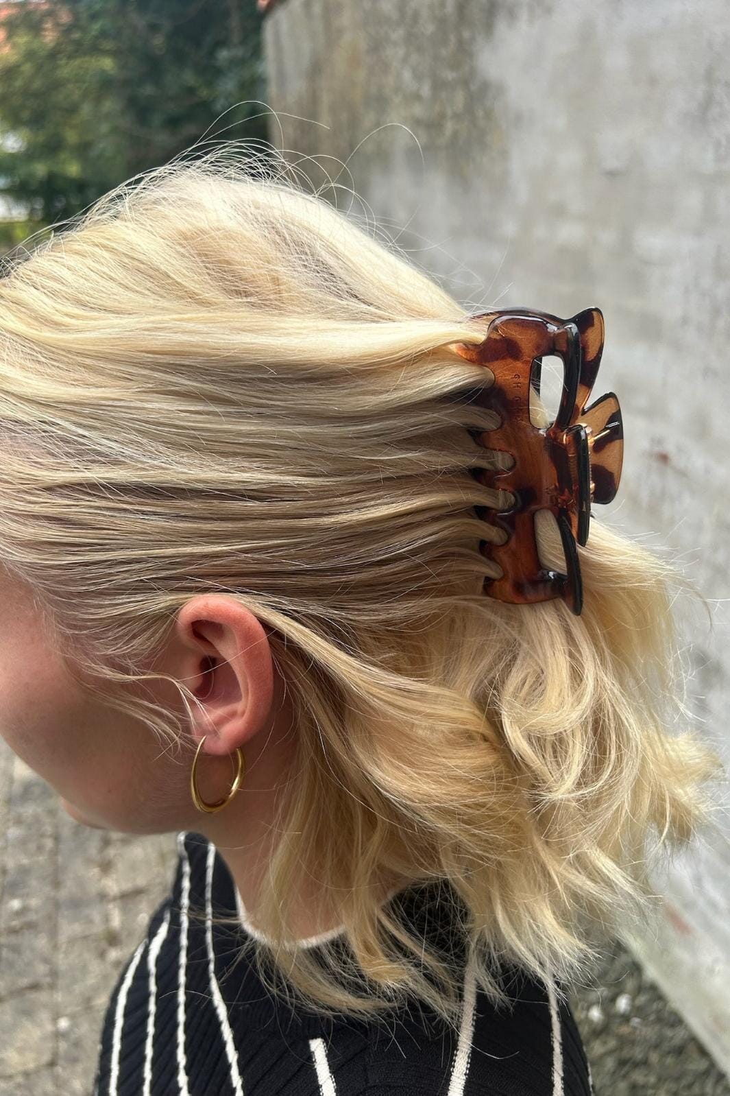 Rektangulära hårspännen från Anobel Copenhagen i mörkbrun. Spännet har en praktisk storlek och håller håret på plats med ett bra grepp.