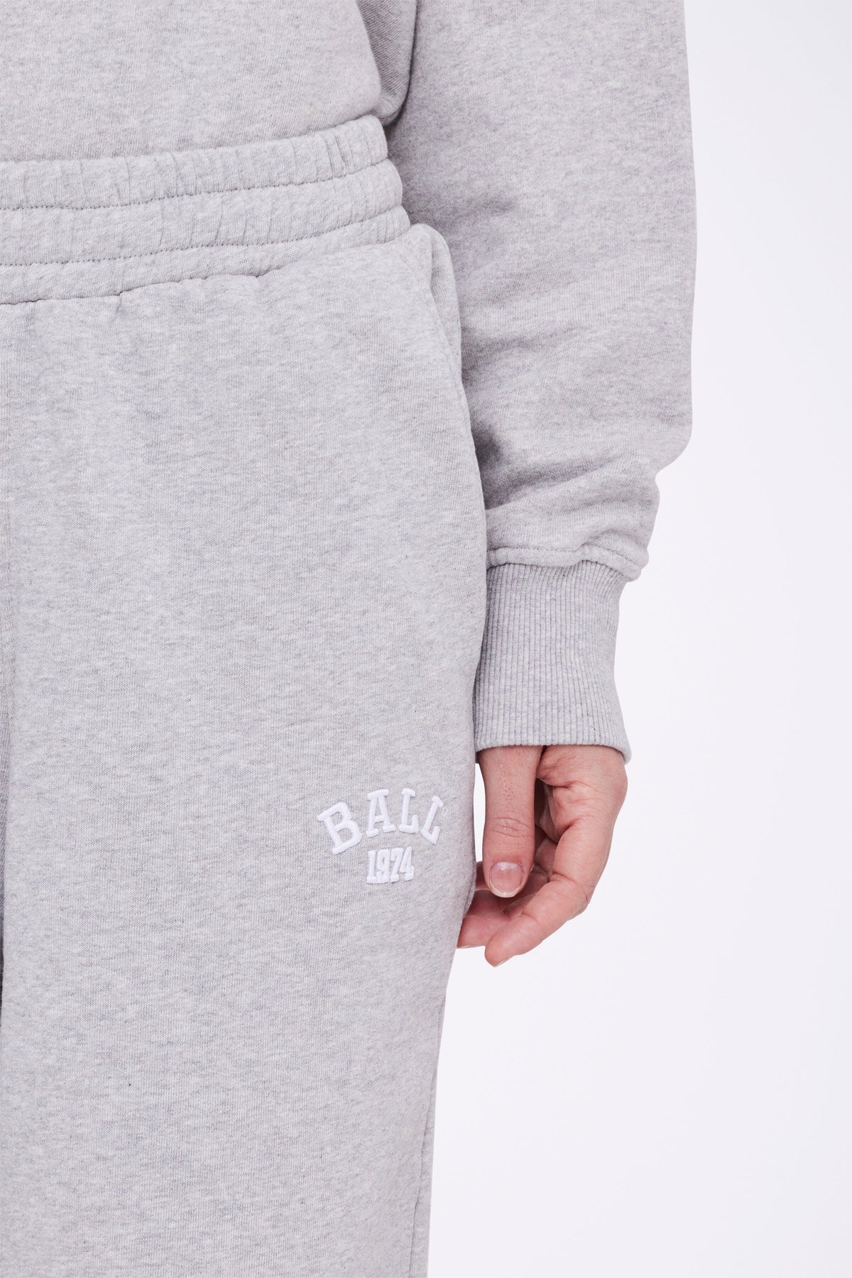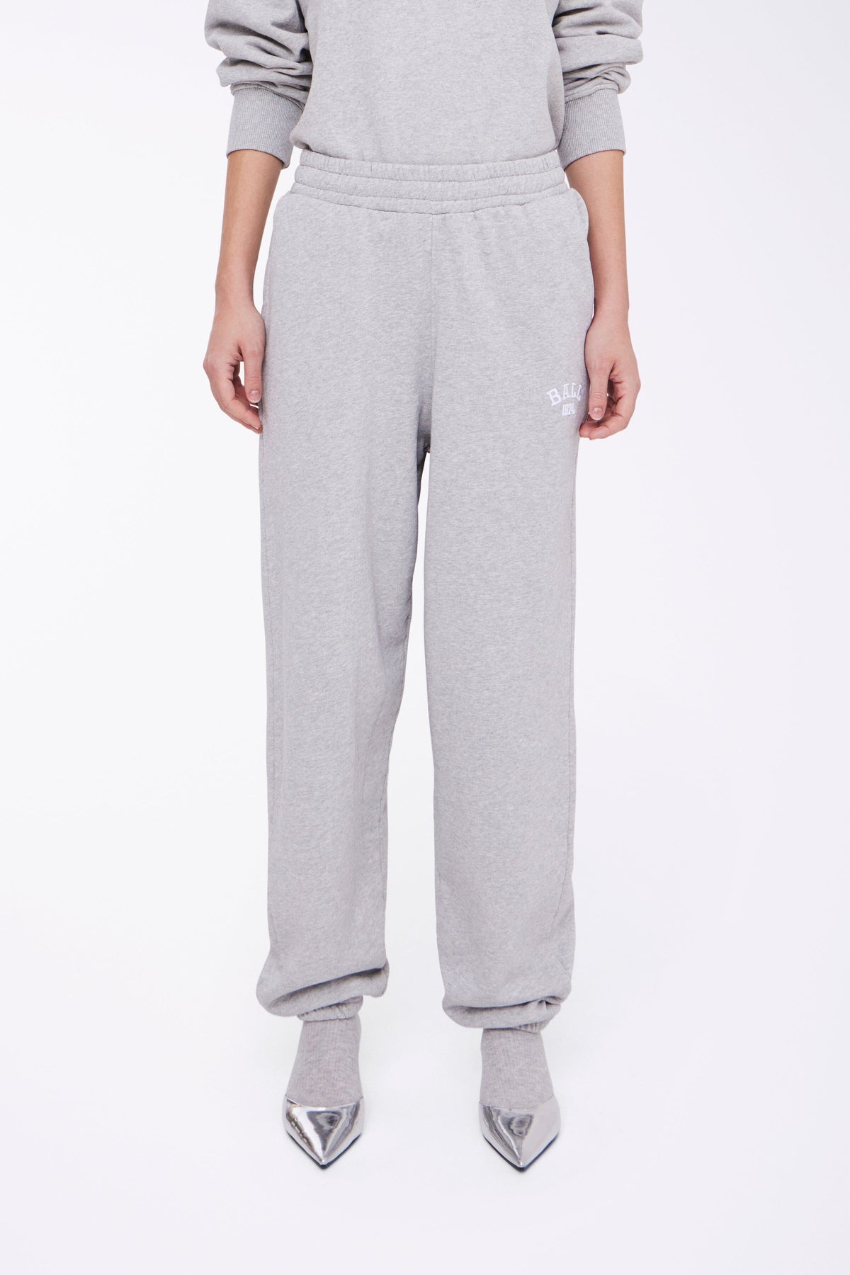Träningsbyxor från Ball i medium grey melange. Byxorna har en avslappnad passform och är tillverkade med en melerad look som ger en klassisk stil.