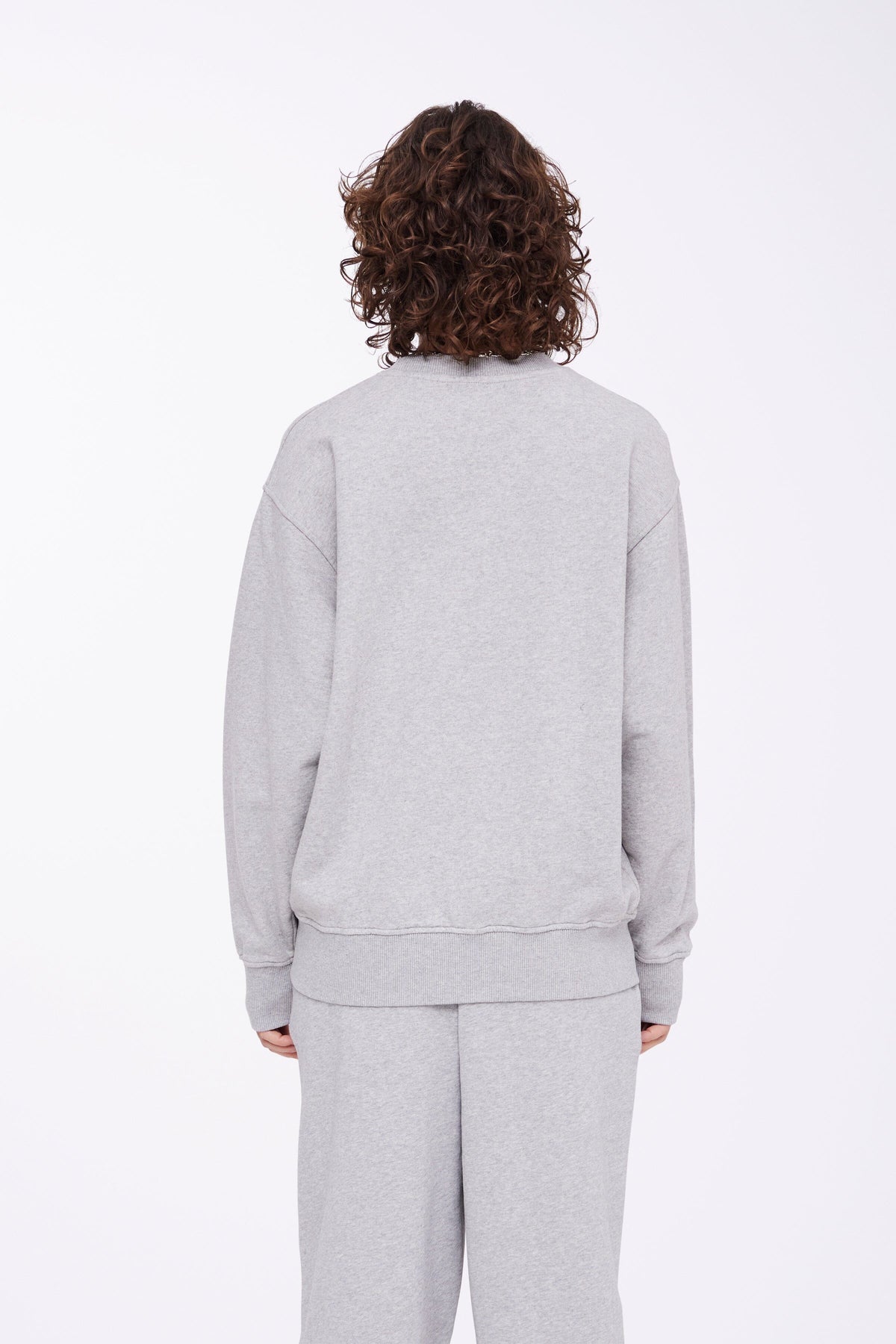 Mellan grå sweatshirt från Ball med broderad logotyp på bröstet. Den melerade effekten och de ribbade kanterna ger sweatshirten ett robust uttryck.