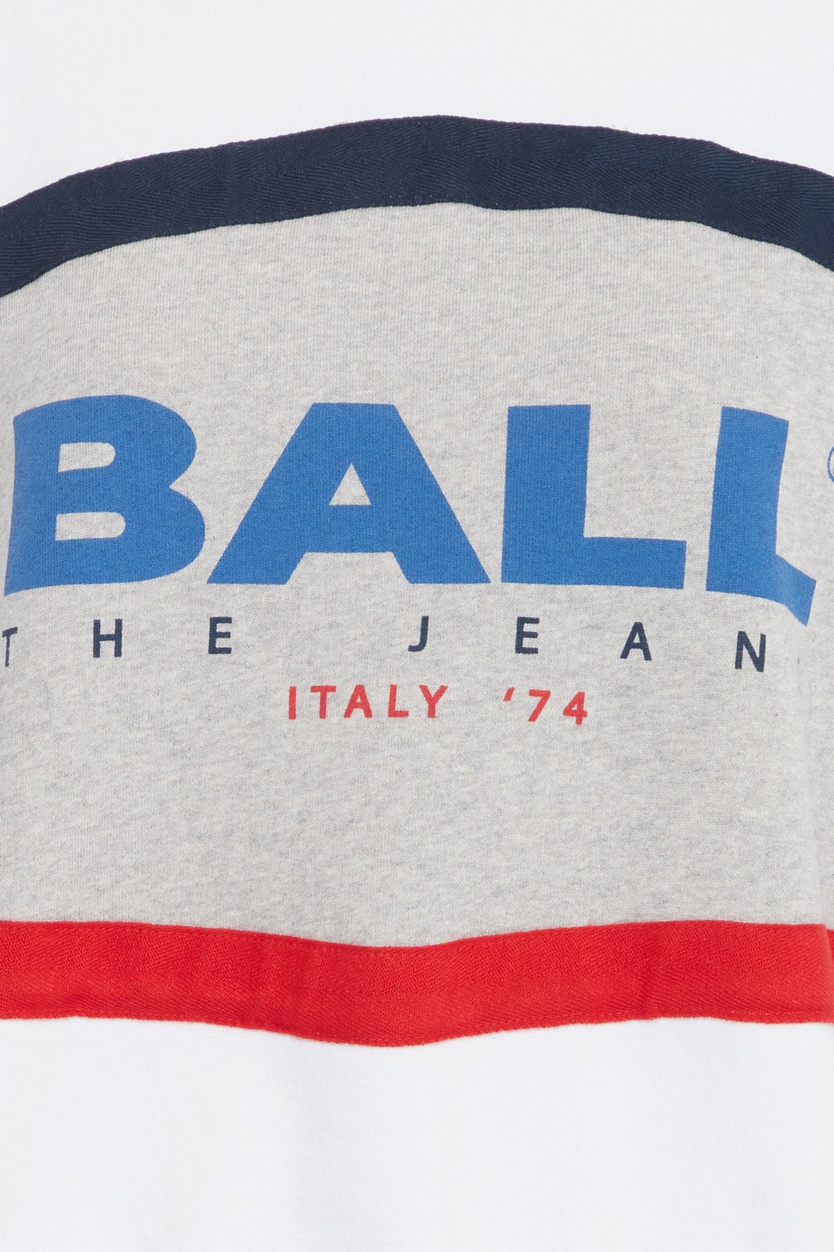 Grå sweatshirt från Ball med en retroinspirerad design. Sweatshirten har ränder i grått, vitt och rött samt en broderad Ball-logotyp med referens till Italien '74.