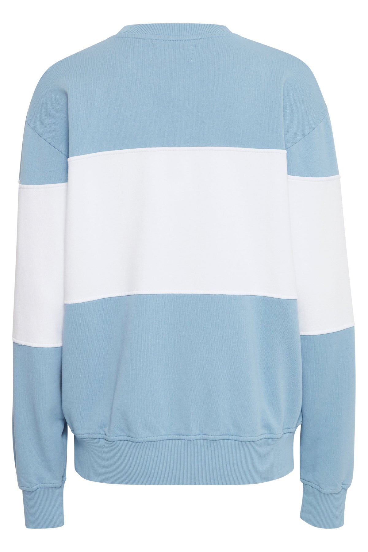 Ljusblå sweatshirt från Ball med vitt färgfält och broderad logotyp. Den har en lös passform och långa ärmar med ribbkanter vid handlederna och midjan.