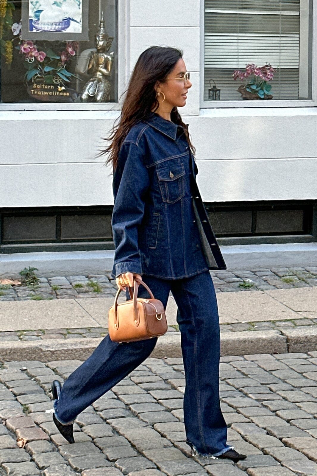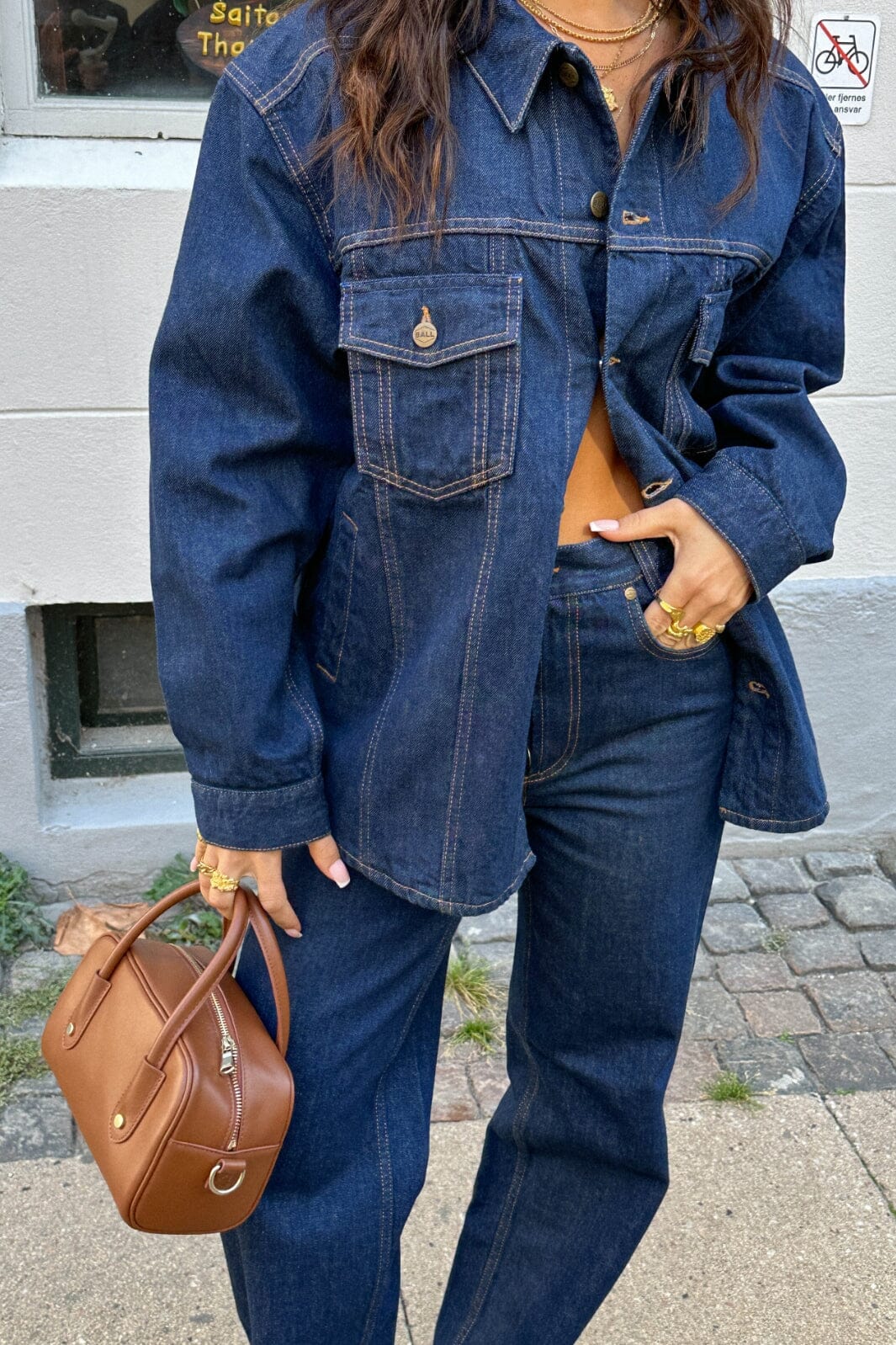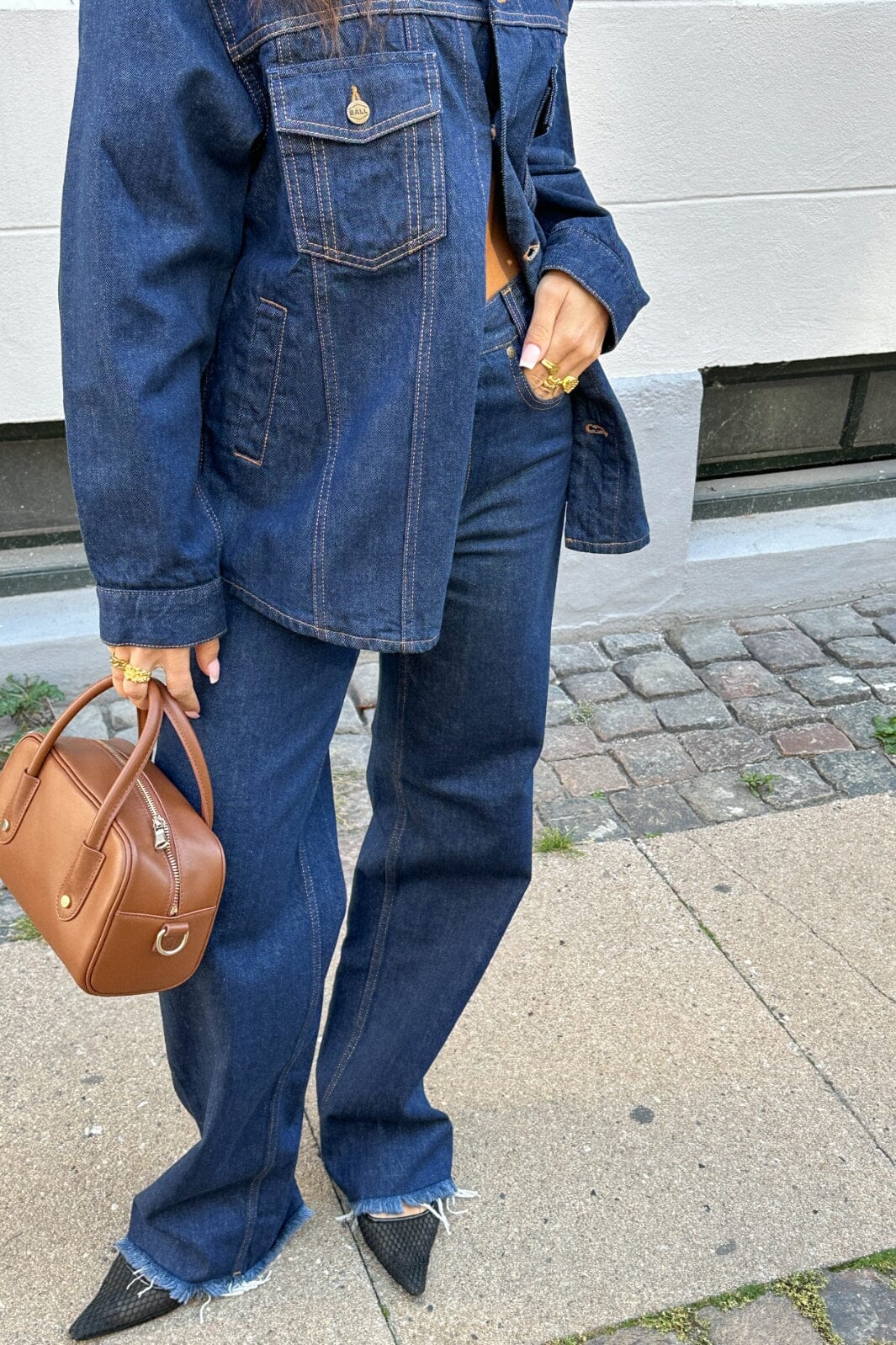Jeans från Ball i mörkblå rinse wash. Byxorna har vida ben med fransade kanter nederst och dekorativa sömmar på fickorna.