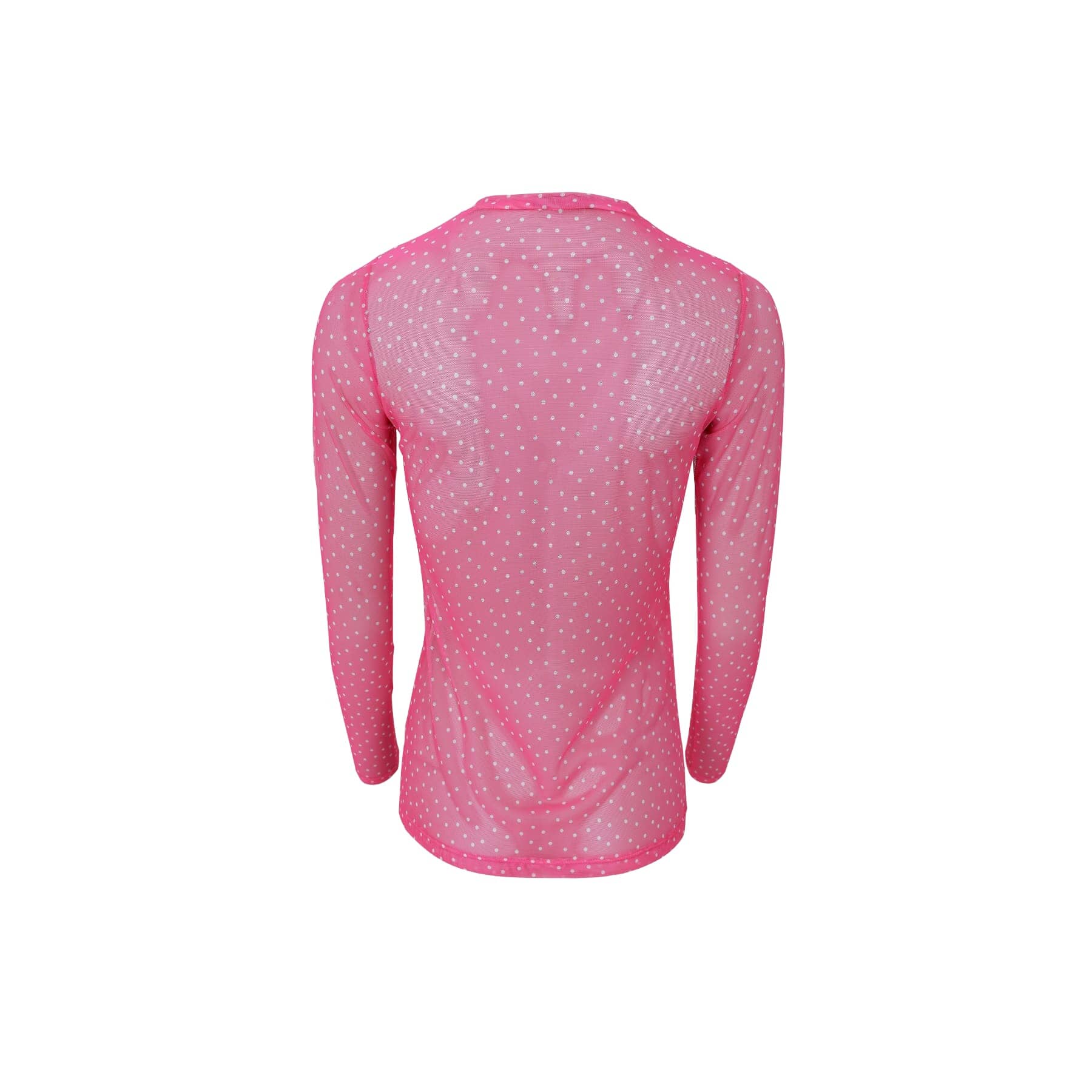 Meshblus från Black Colour i rosa med vita prickar. Blusen har långa ärmar och en rund halsringning och passar både till vardag och festliga tillfällen.