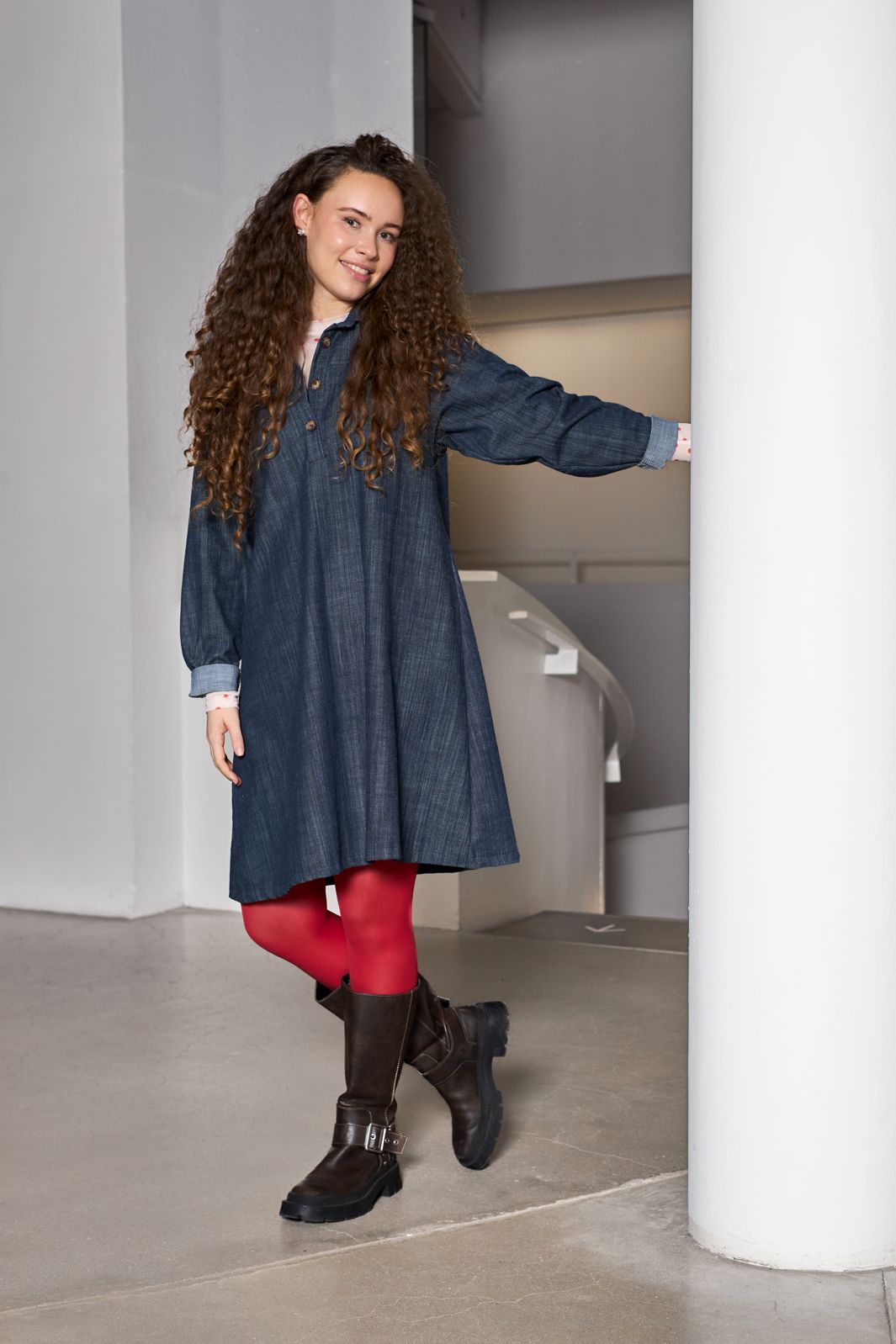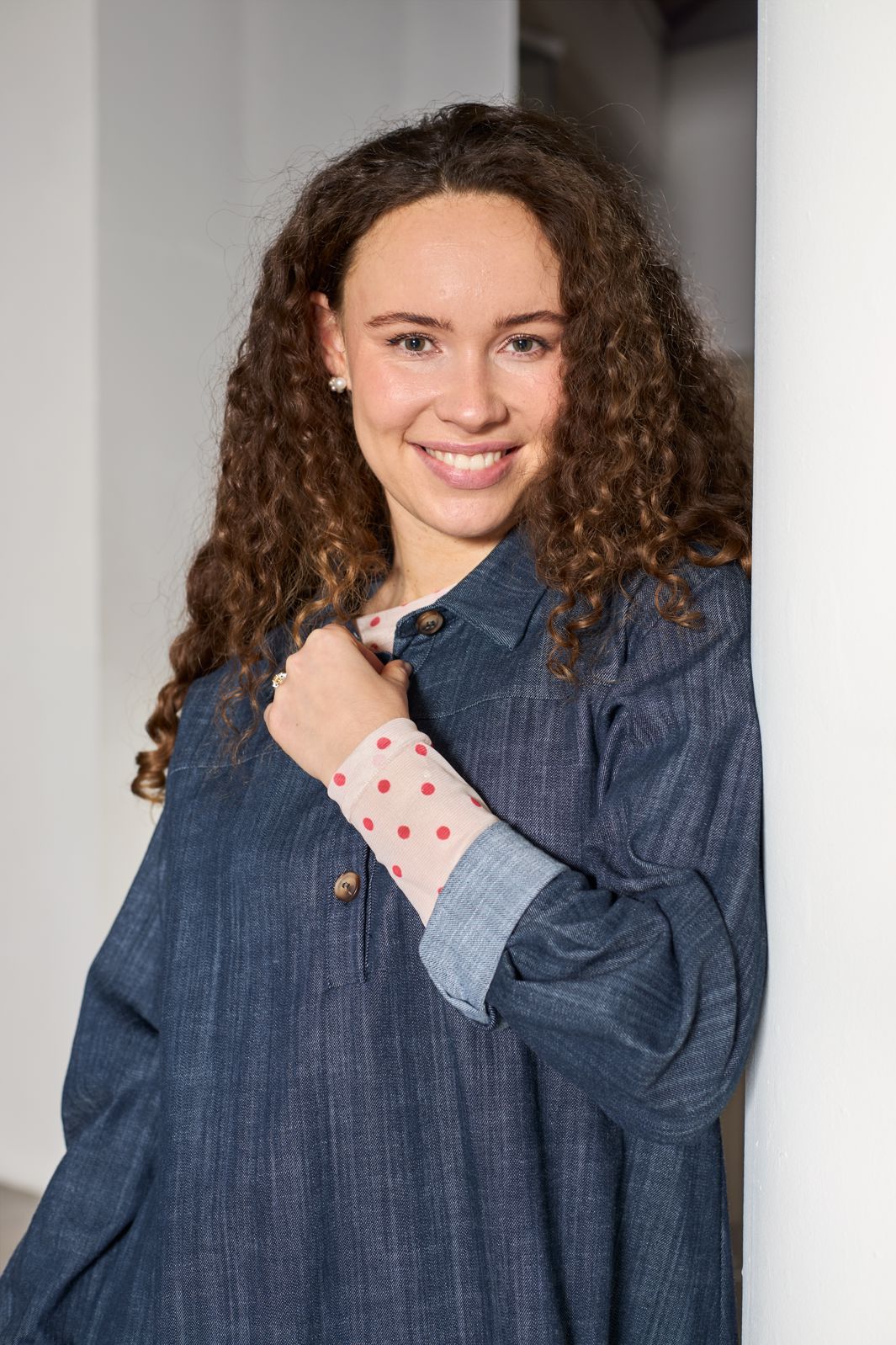 - Långa ärmar med skjortkrage