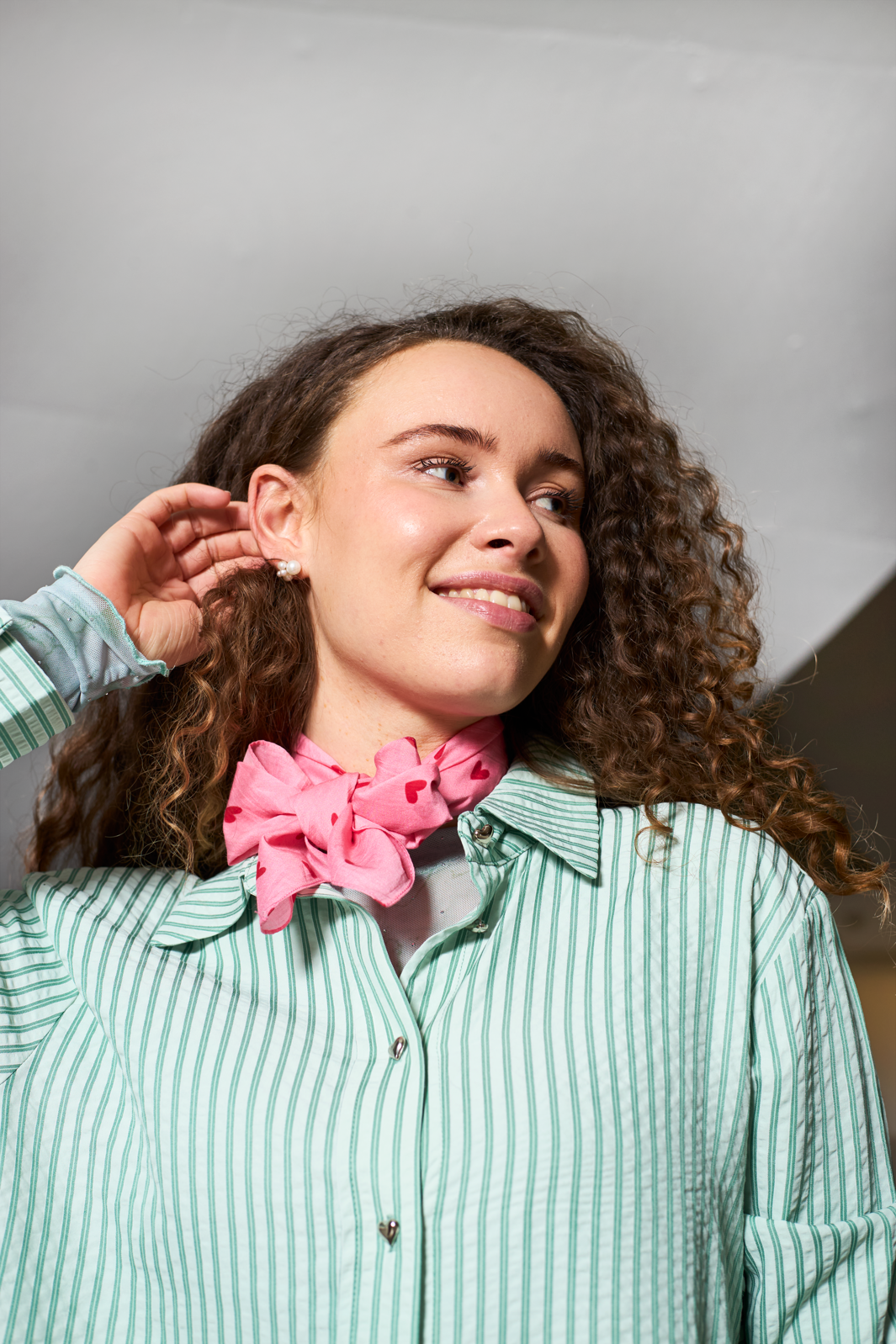 Mini-scarf från Black Colour i rosa och rött med röda hjärtan. Scarfen är gjord av bomull och siden.