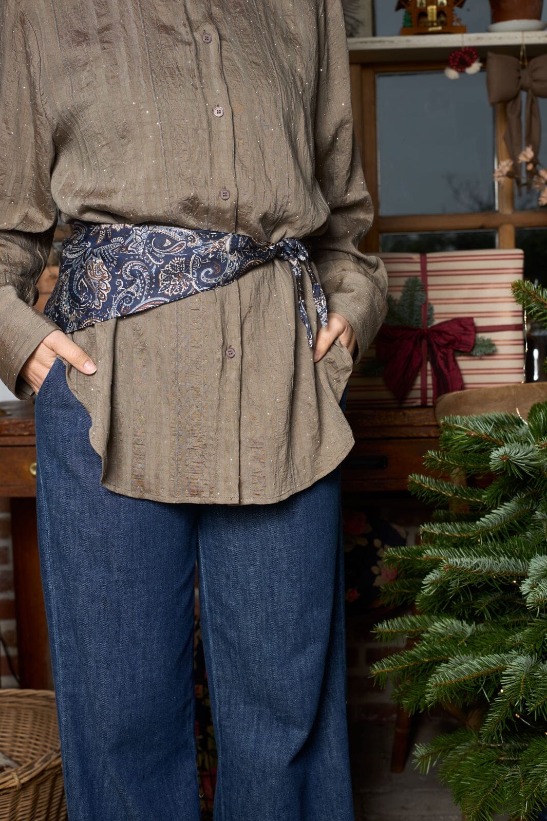 Black Colour Bcfenella Mini Scarf Double Layer 3649 Färg: Navy Paisley