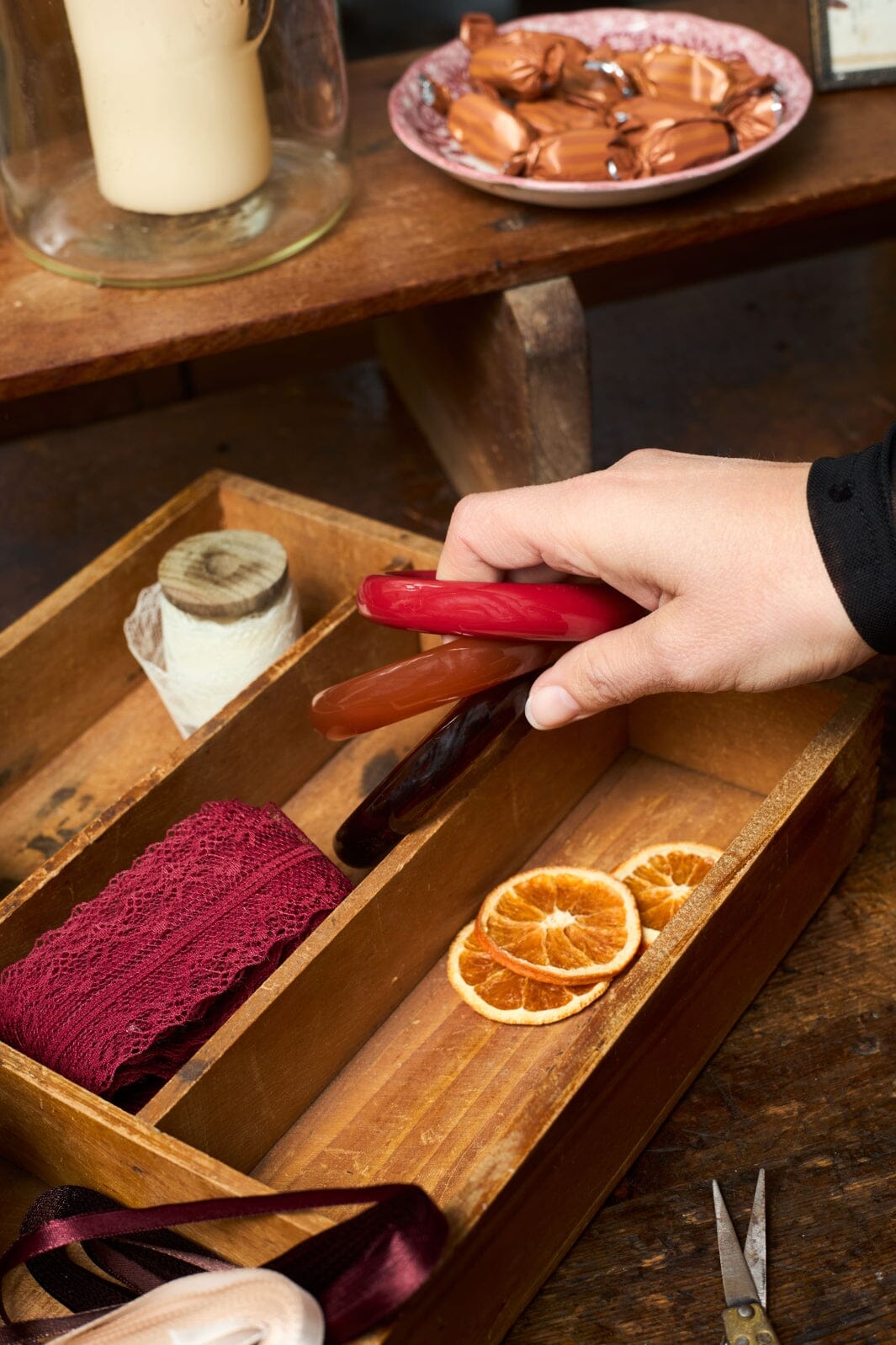 Bangle från Black Colour i hazelfärgen med bruna och orange nyanser. Akrylen gör bangeln lätt att bära.