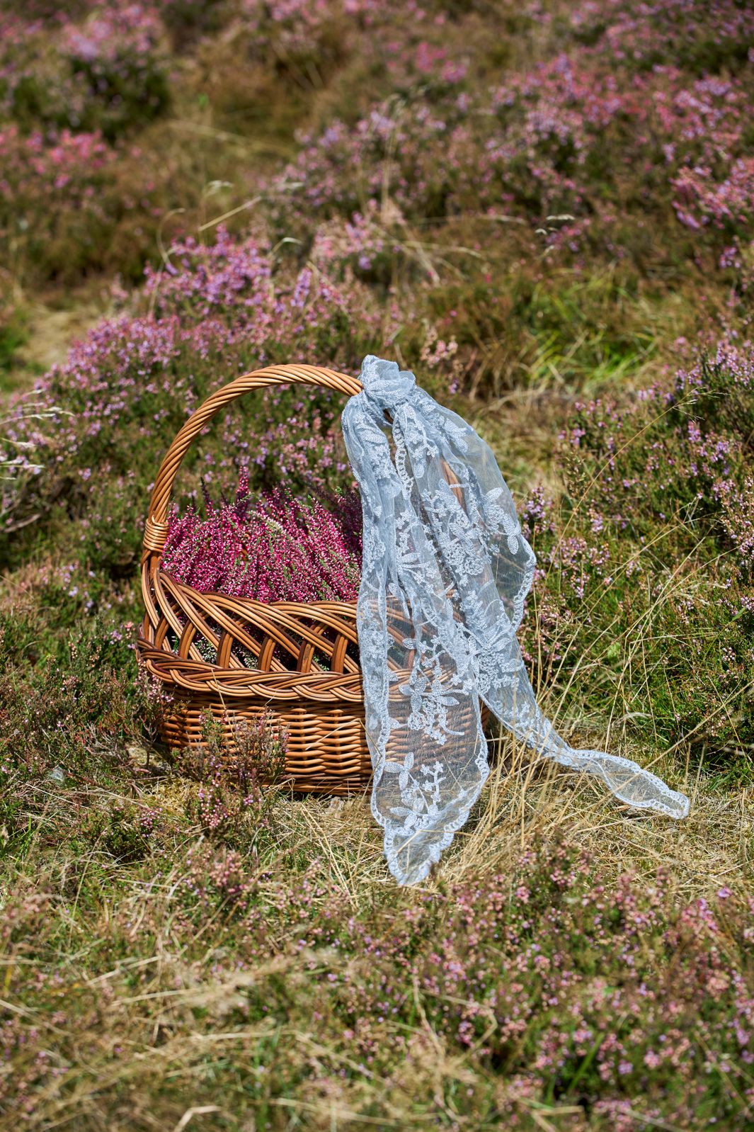 Trekantigt halsduk från Black Colour i gråblå nyanser. Halsduken har ett genomskinligt material med spetsdetaljer och ett blommönster.