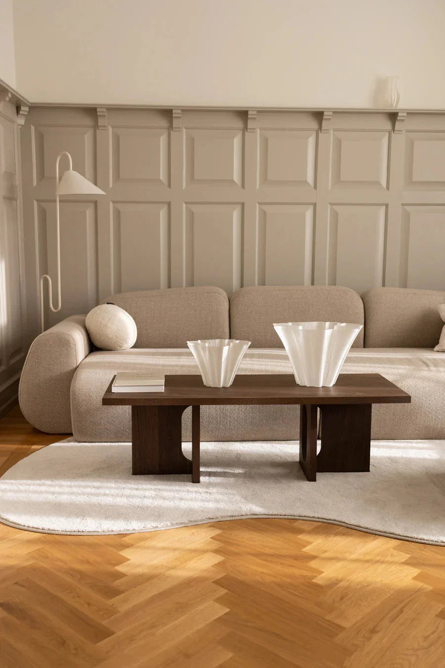 Genomskinlig vas från Bloom Objects med en vågig, korallinspirerad form. Tillverkad med 3D-printteknik i biobaserad PLA och producerad lokalt i Danmark.