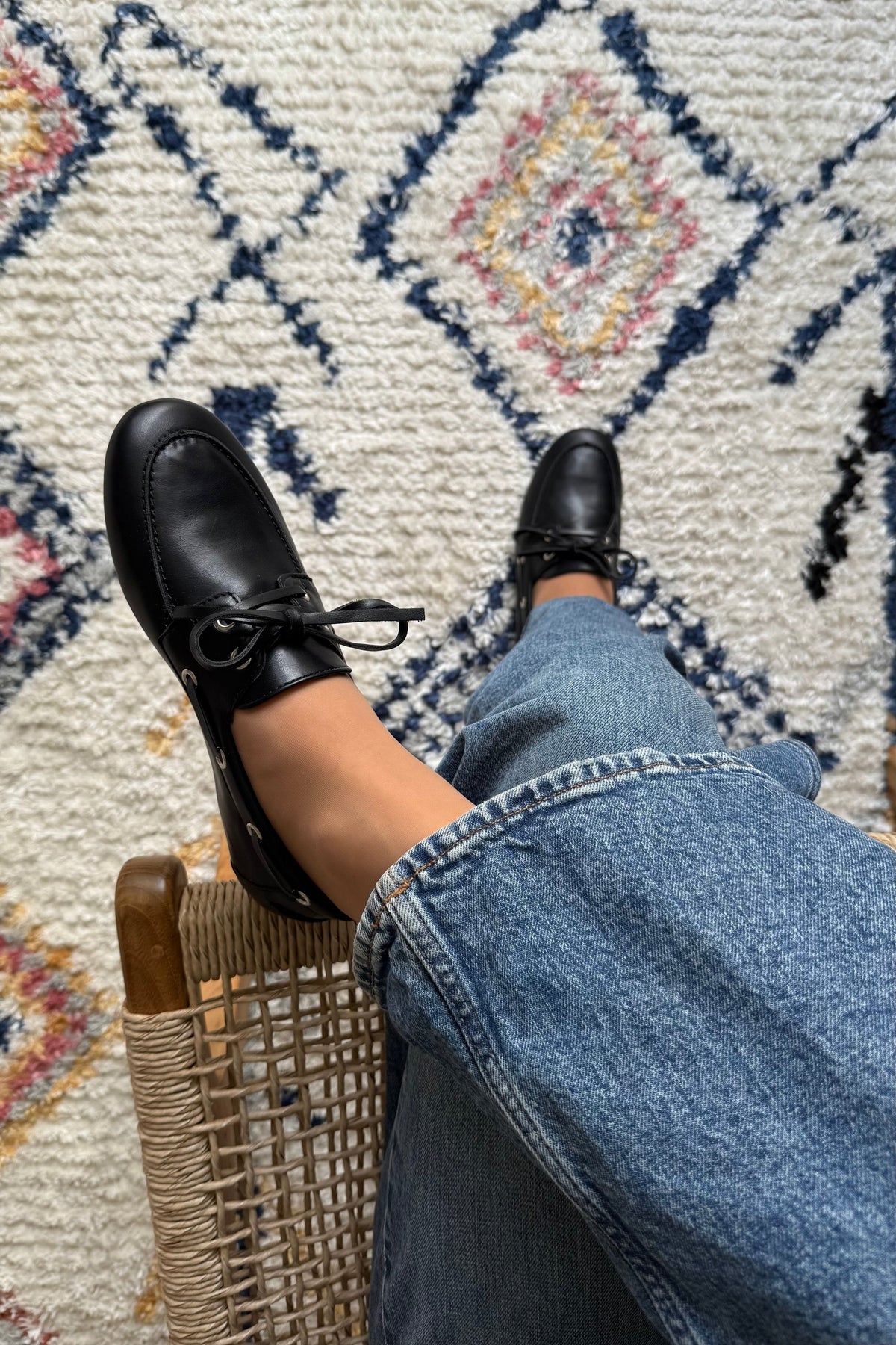 Svart loafer från Bloom med snörning. Skon har en rund tå och låg klack som gör den bekväm att gå i. Den svarta designen matchar enkelt med både jeans och byxor.