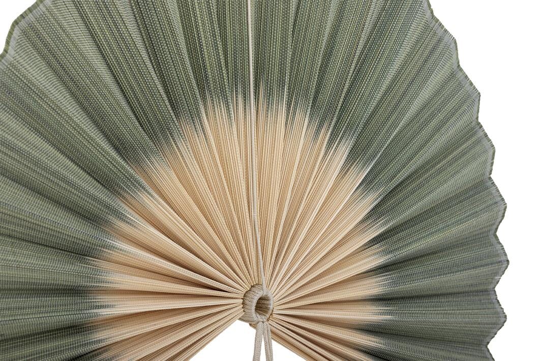 Väggdekoration från Bloomingville i 100% bambu med gröna veck och en beige mitt. Designen har en halvcirkelformad solfjädersform med en tofs.