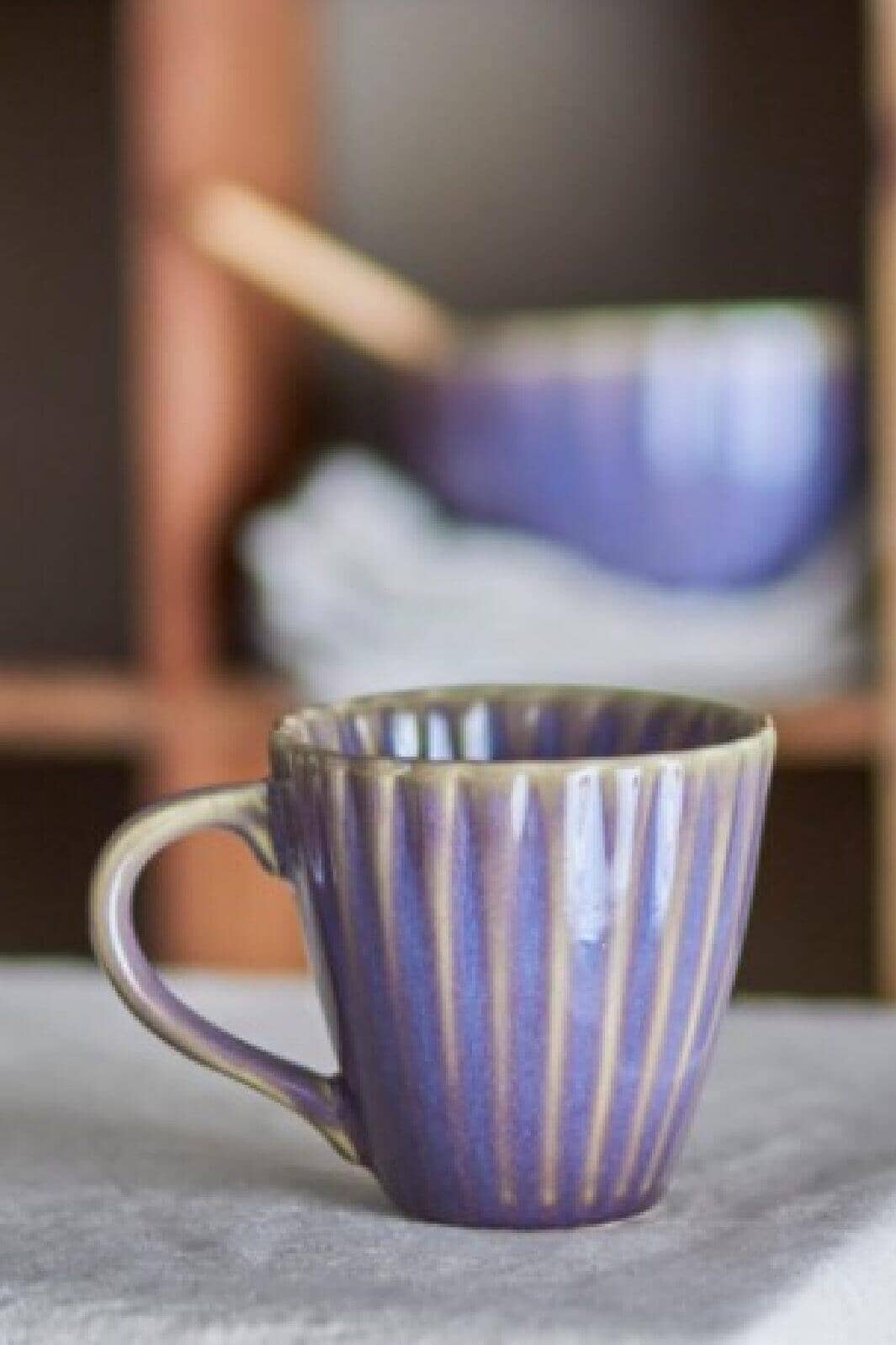 Paula Koppen från Bloomingville är en del av den omfattande Paula servisen, här i vackra lila nyanser, i en retrodesign som tillför ett unikt och nostalgiskt uttryck till den välkända formen. Den handmålade koppen är unik, eftersom varje penseldrag lägger till en personlig touch och skapar en unik variation i designen.