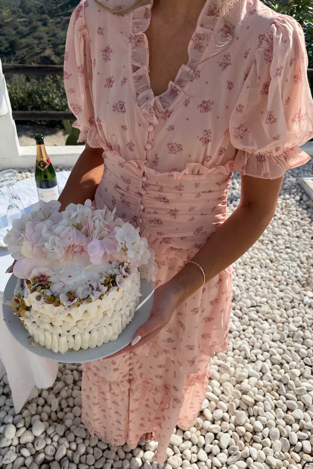 • Rosa med blommigt tryck