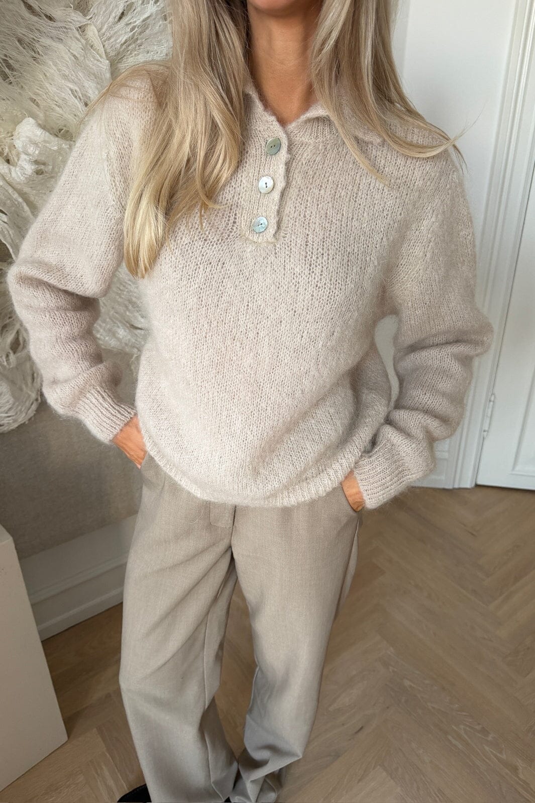 Poloshirt från BYIC i beige. Stickad i en blandning av mohair, akryl, polyamid och ull med en klassisk polokrage och knappstängning.