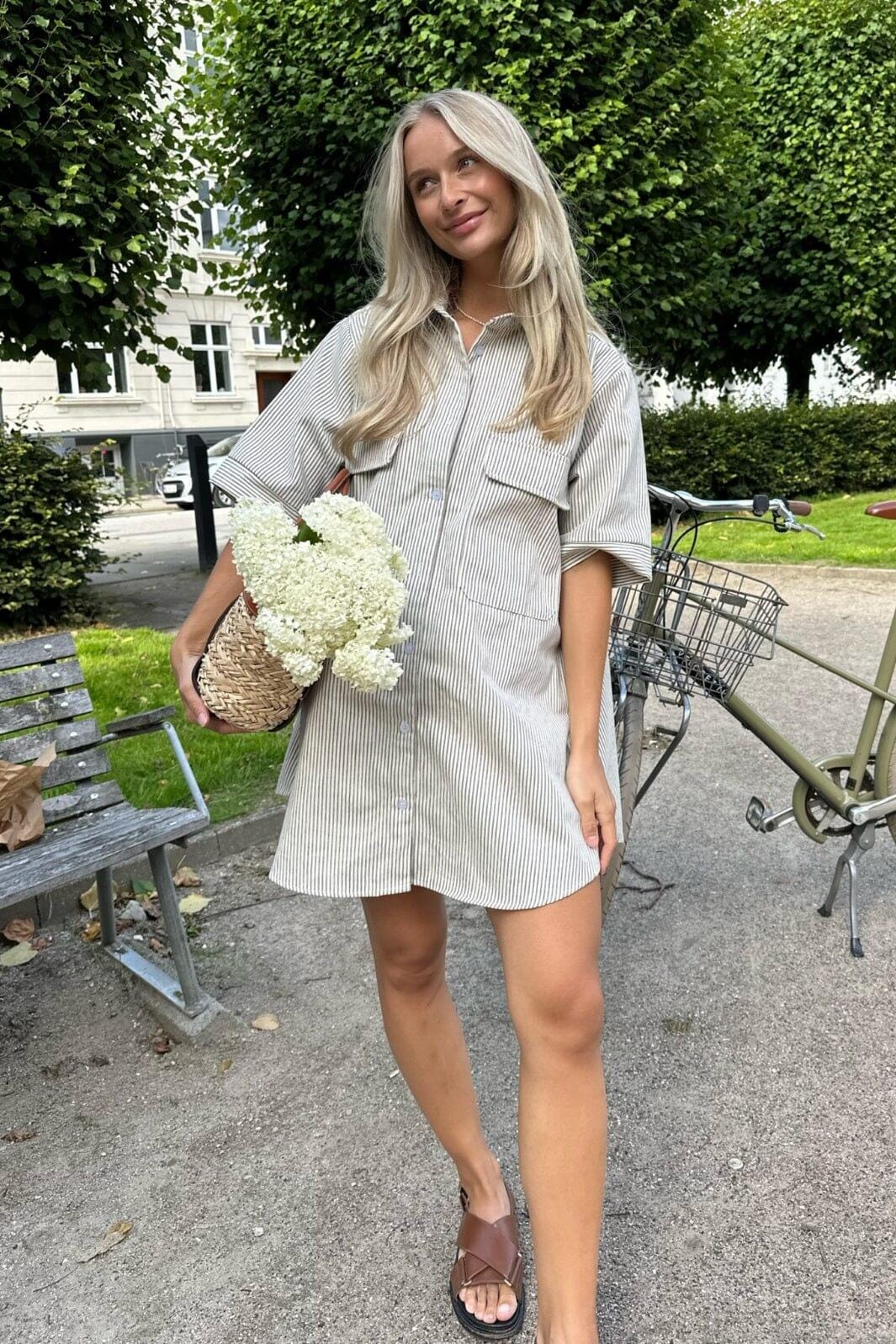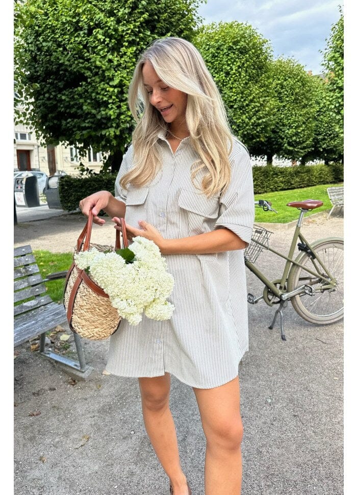 BYIC Selda Shirt Dress Färg: Dark Beige Woven Stripe