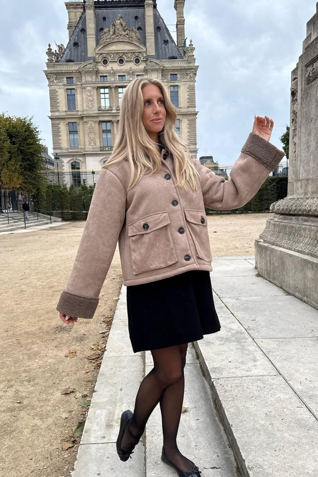 Ljusbrun teddyjacka från BYIC med skjortkrage och kontrasterande detaljer. Jackan har en regular fit och stora fickor fram. Knappar hela vägen ner gör den lätt att ta av och på.