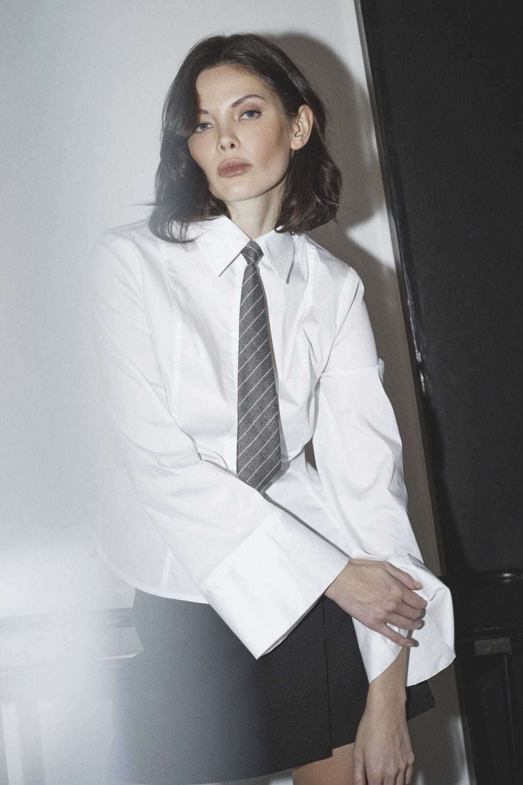 Grårandig slips från Co´Couture med diagonala ränder i grått och vitt. Slipset har en klassisk design med matt finish, som passar både till vita skjortor och kostymer.