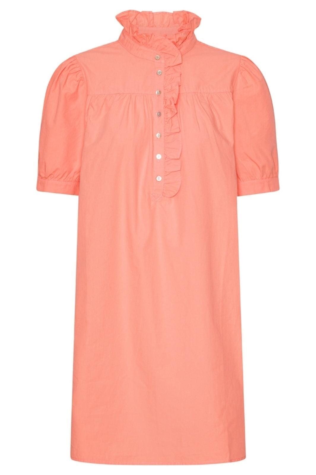 Denna Ariana Poplin-klänning från Continue är ett charmigt tillskott till garderoben som utstrålar en frisk och livlig charm med sin korallfärg.
