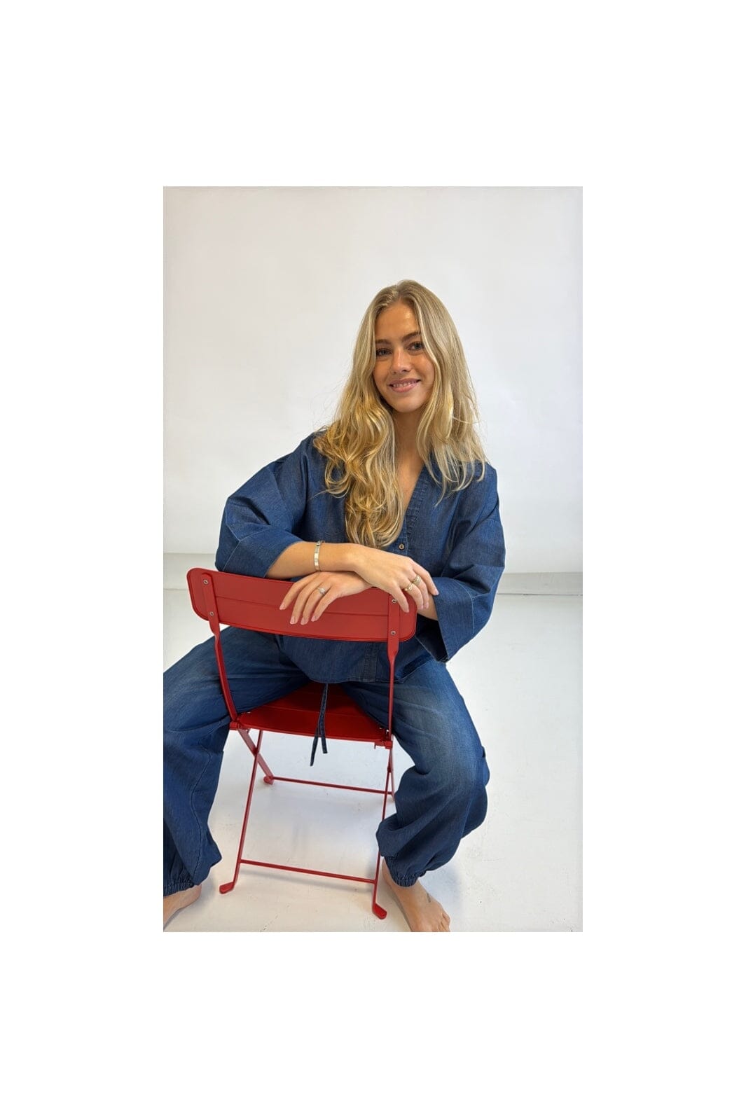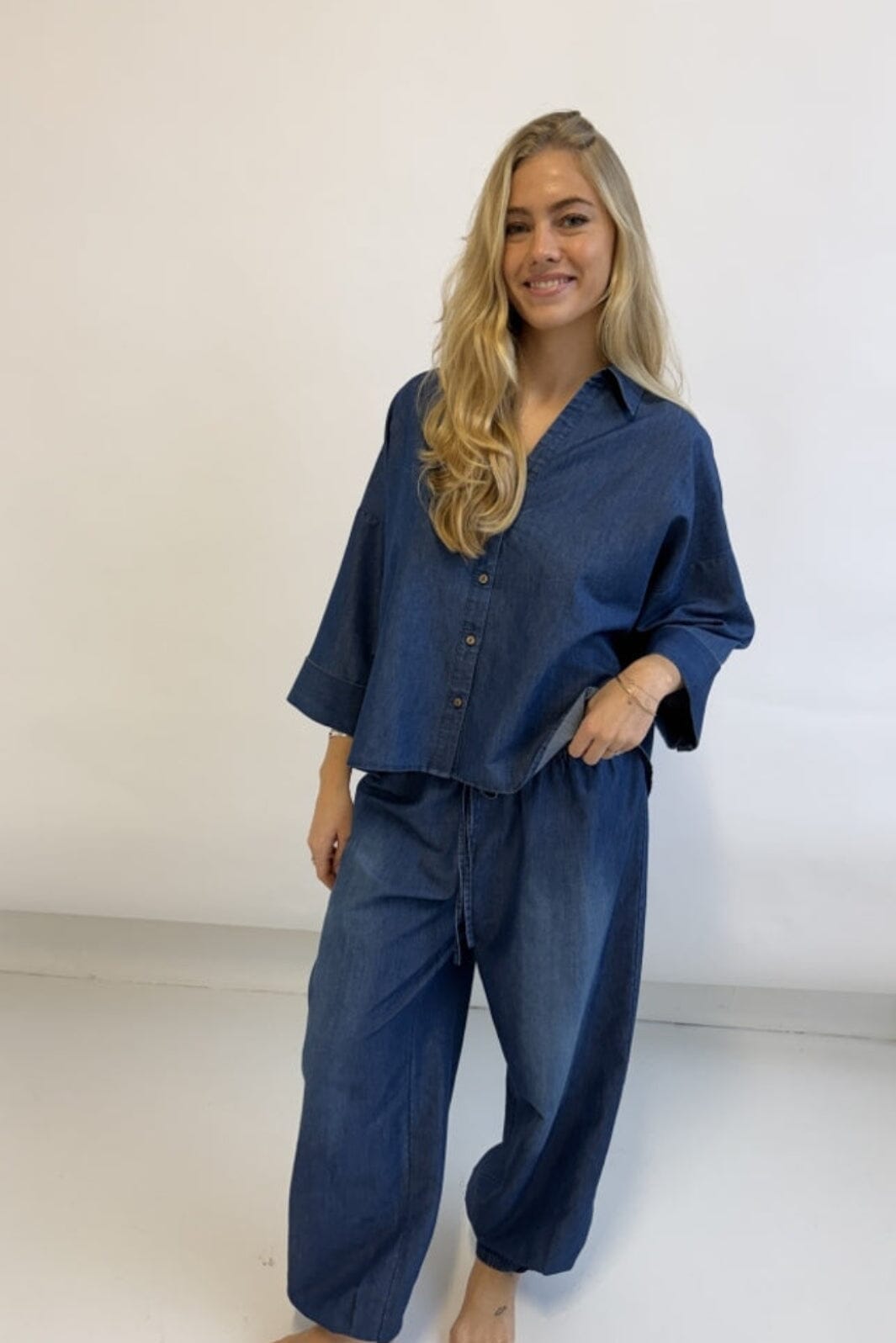 Matchande set från Continue med en topp och byxor i en blå nyans. Tillverkat av 30 % bomull och 70 % polyamid.