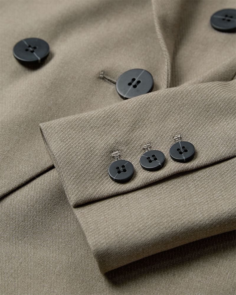 Kavaj från Copenhagen Muse i en beige och grön melerad färg. Kavajen har en klassisk smokingstil med V-ringning och slag samt dekorativa sömmar.