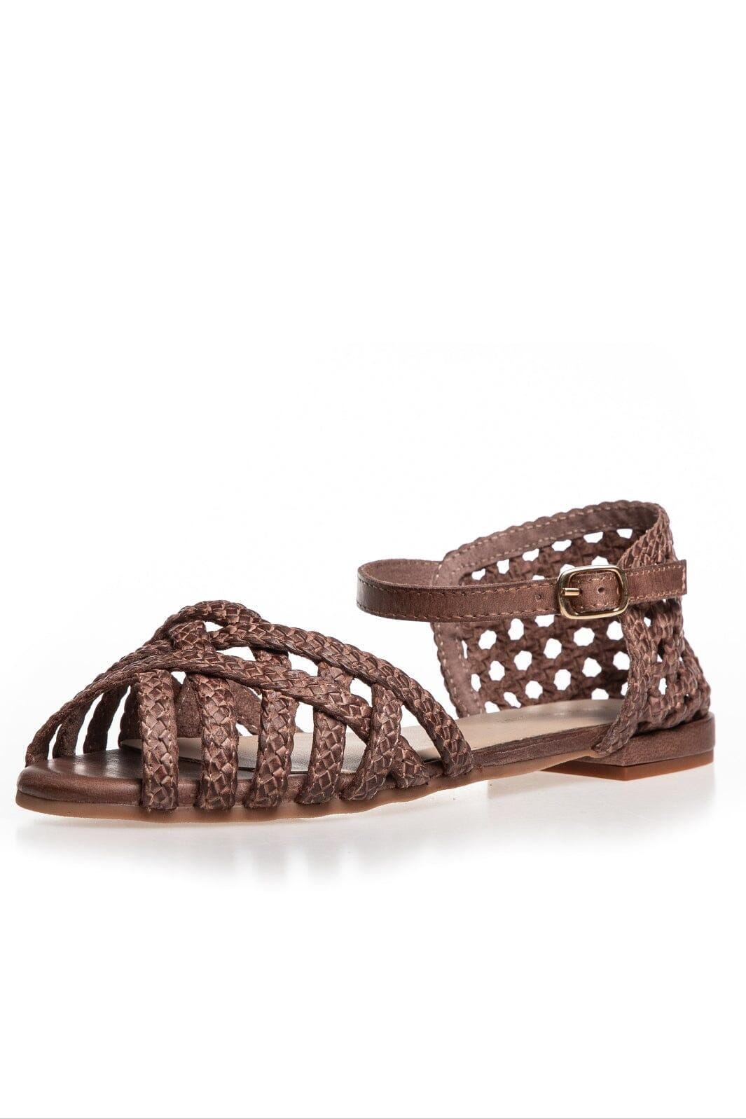 Bruna sandaler från Copenhagen Shoes, tillverkade av läder. Sandalen har en flätad design och en ankelrem med spänne.