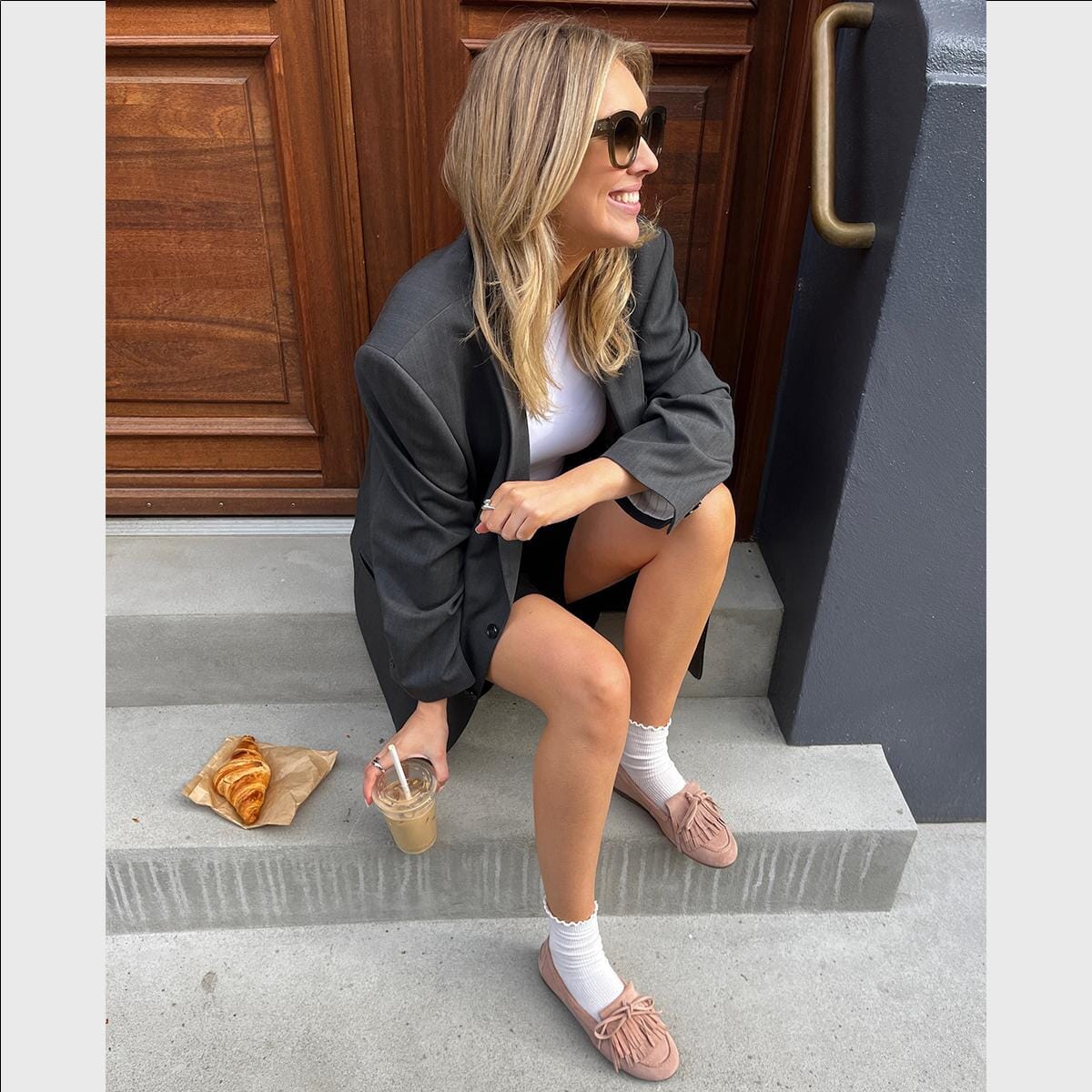 Rosa loafers från Copenhagen Shoes, tillverkade av mjuk mocka. Skon har tofsar framtill och snörningsdetaljer med metallöljetter.