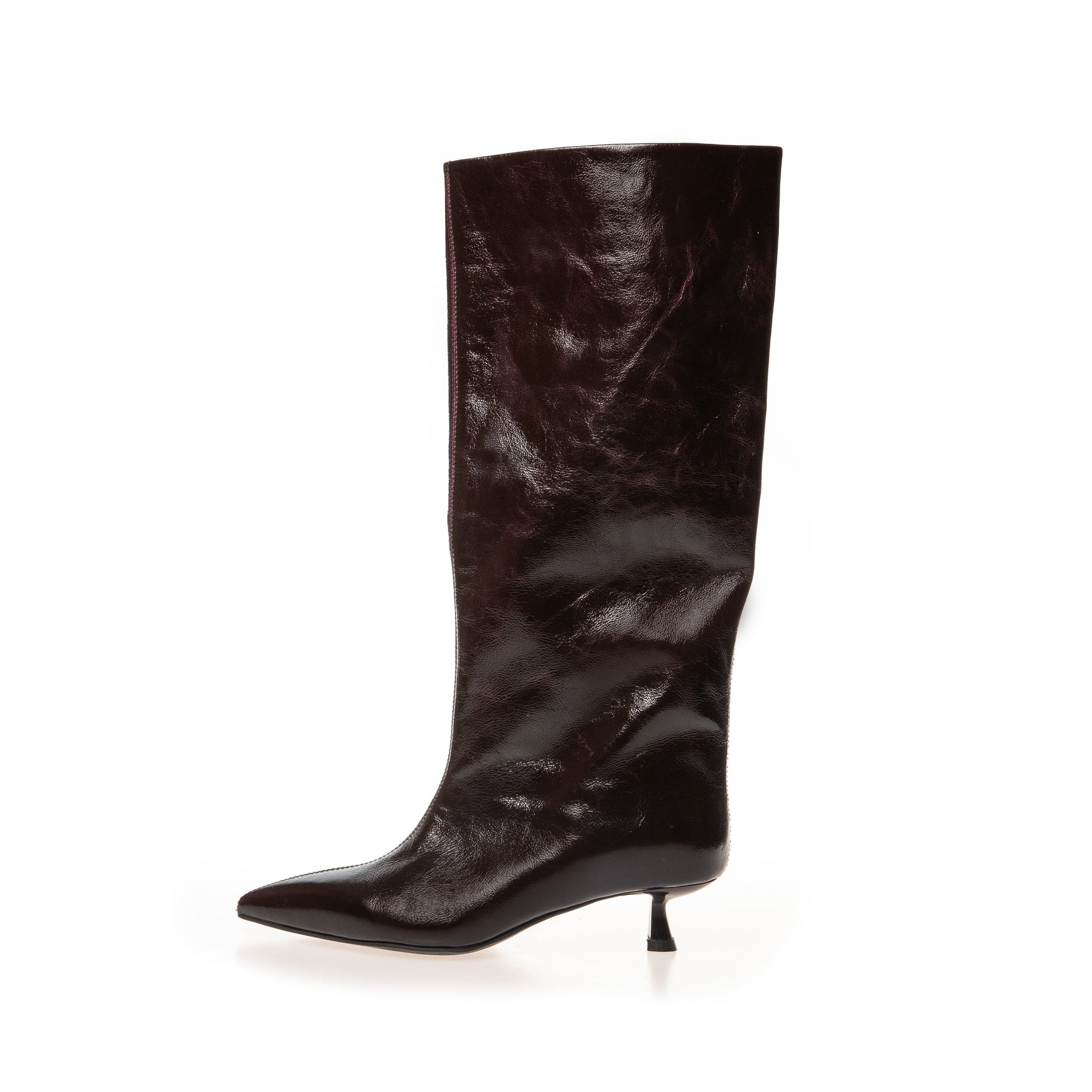 En elegant lång stövel med ett feminint uttryck och exklusiv look. Den mjuka läderkvaliteten formar sig vackert runt benet, medan den slanka designen och den lilla klacken ger en sofistikerad touch till både vardag och fest.