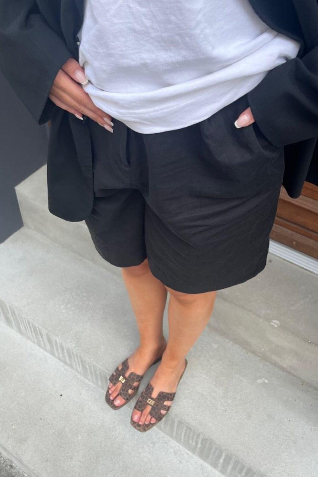 Sandaler från Copenhagen Shoes i mocka med leopardmönster. Sandalerna har en platt sula och en guldfärgad detalj på remmen.