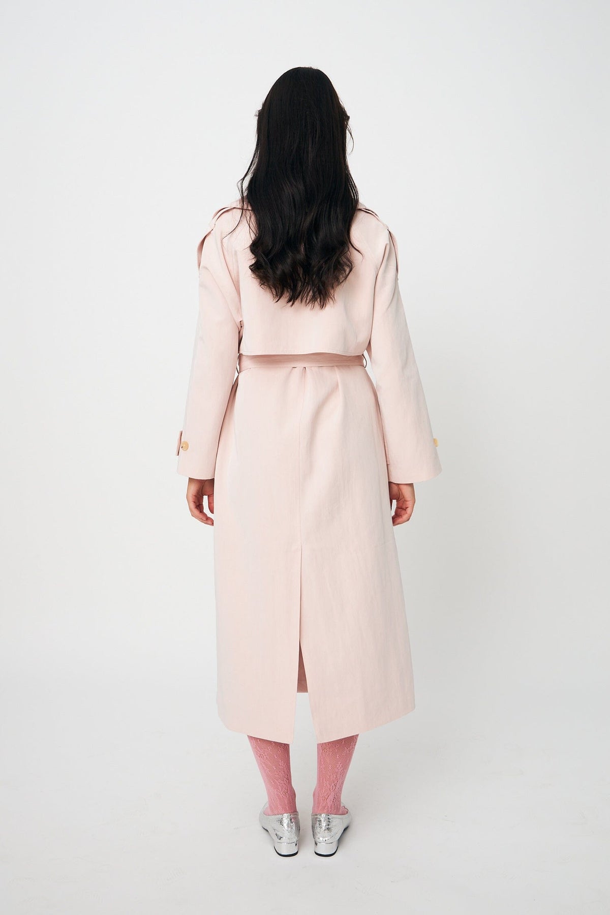 Trenchcoat från Cras i orkidépink. Fracken har en dubbelknäppt front med stora knappar och ett bälte i midjan.
