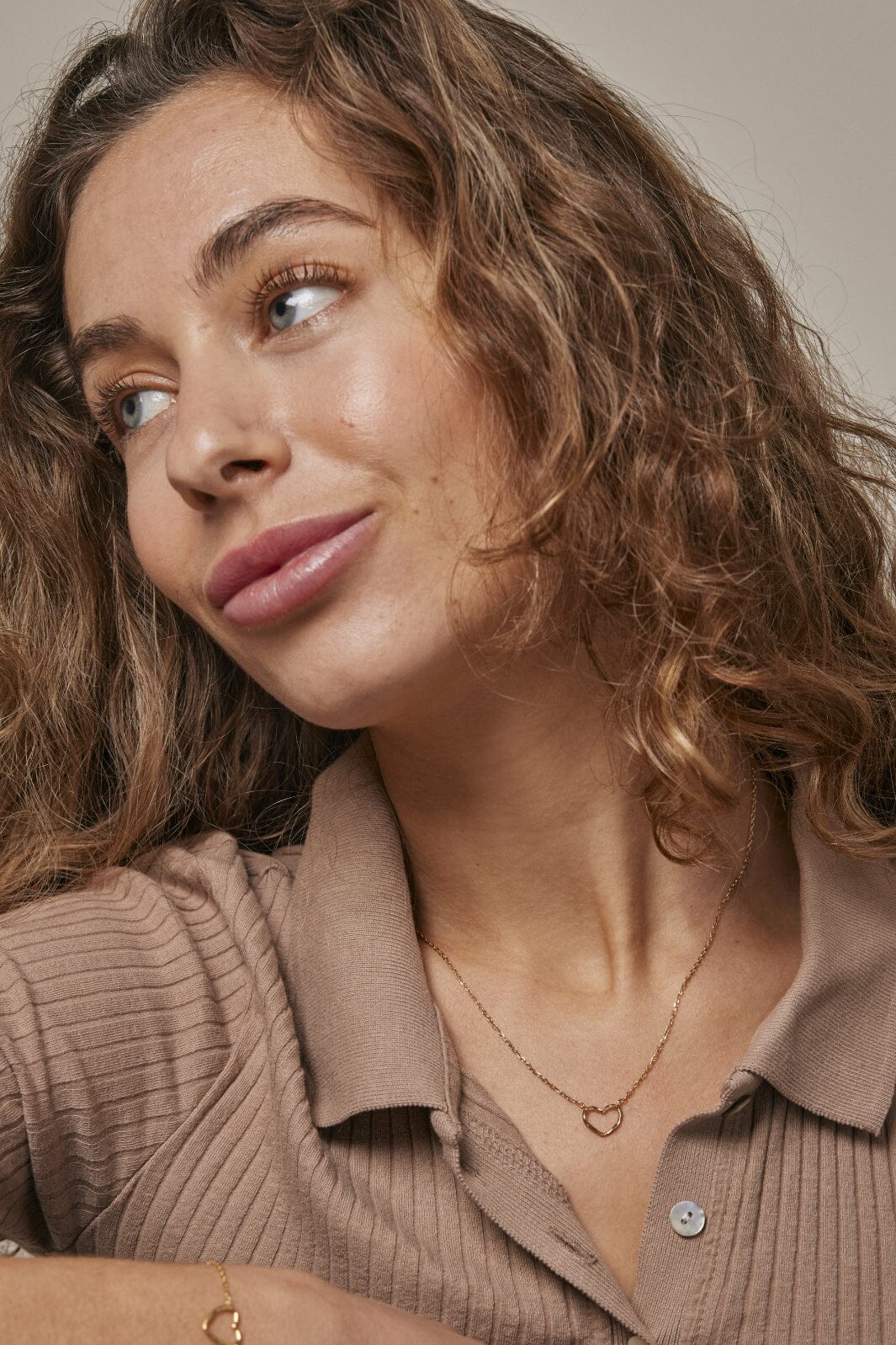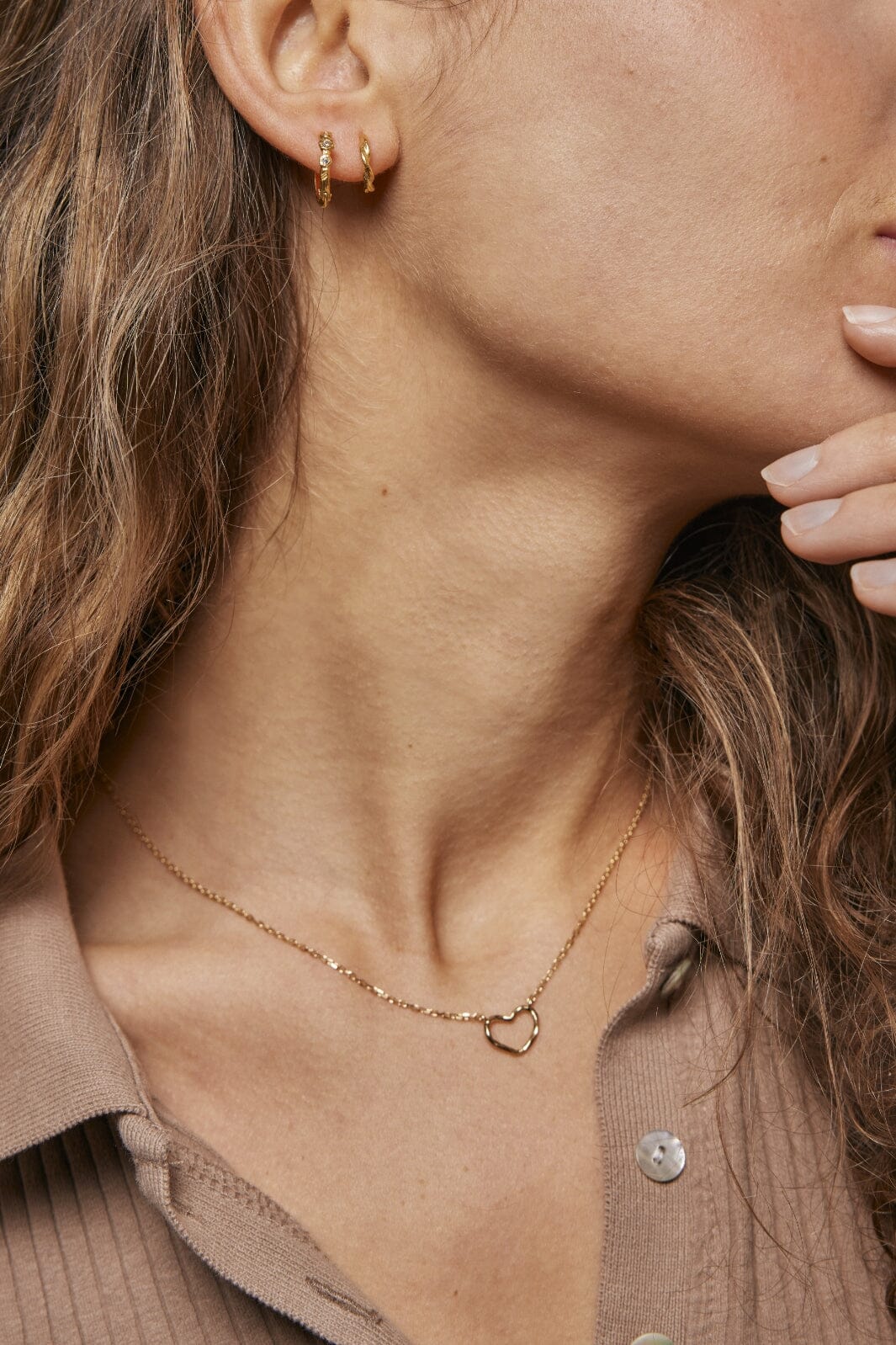 Handgjord halsband från Enamel Copenhagen med ett organiskt hjärtformat hänge. Kedjan är tillverkad av 50 % återvunnet sterling silver med 18K guldplätering.