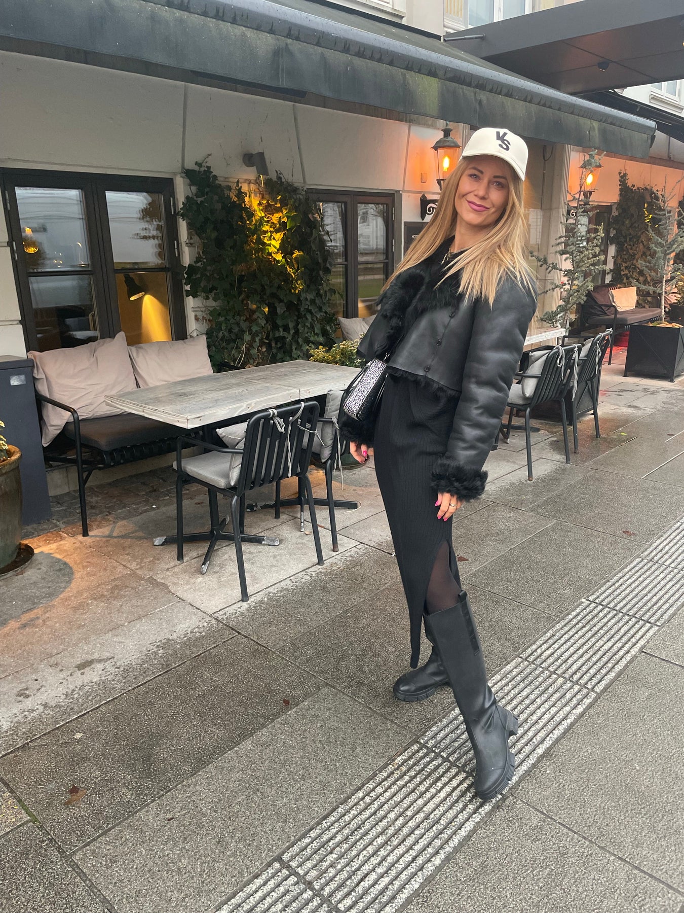 Josefine har storlek 36 på sig och är 1.68 lång. Den är oversize i modellen.