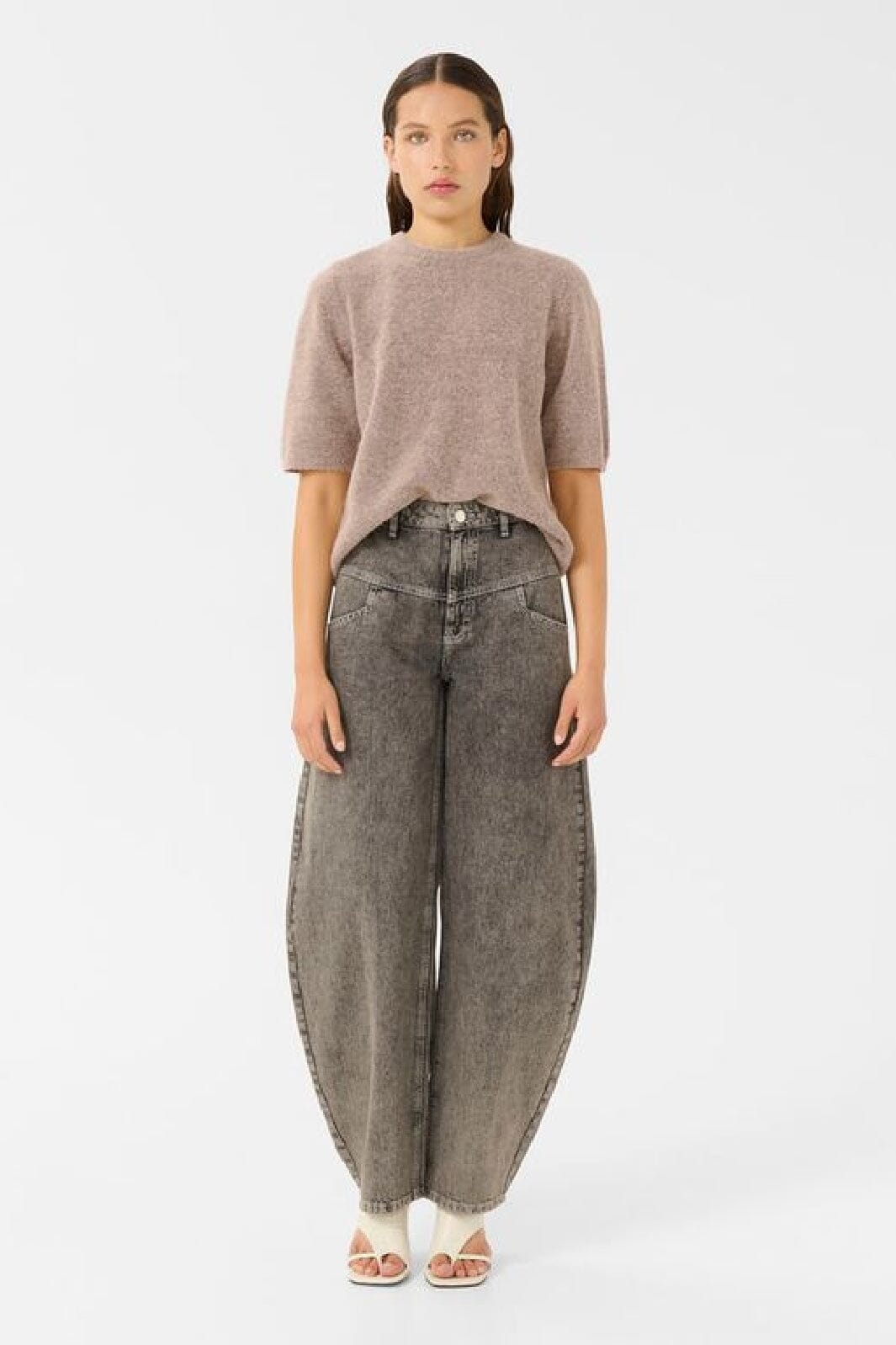 Kortärmad tröja från Gestuz i rose dust melange. Den har en rund halsringning och en regular fit. Tröjan är gjord av en mjuk blandning av ull och andra material.