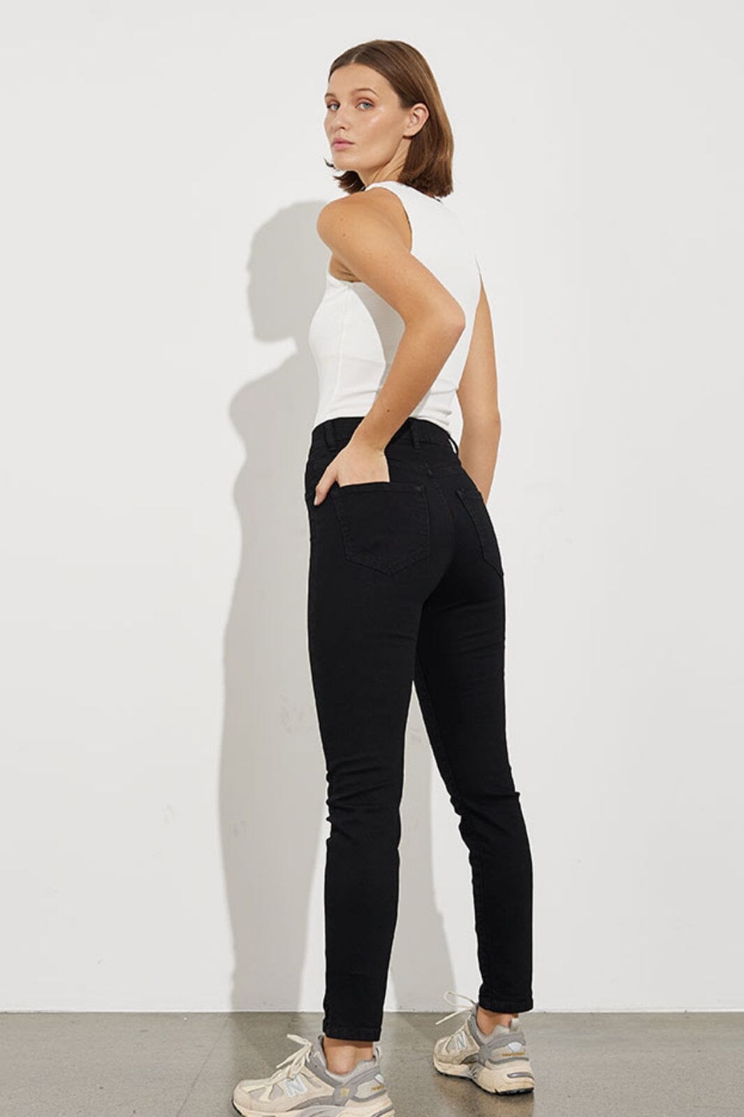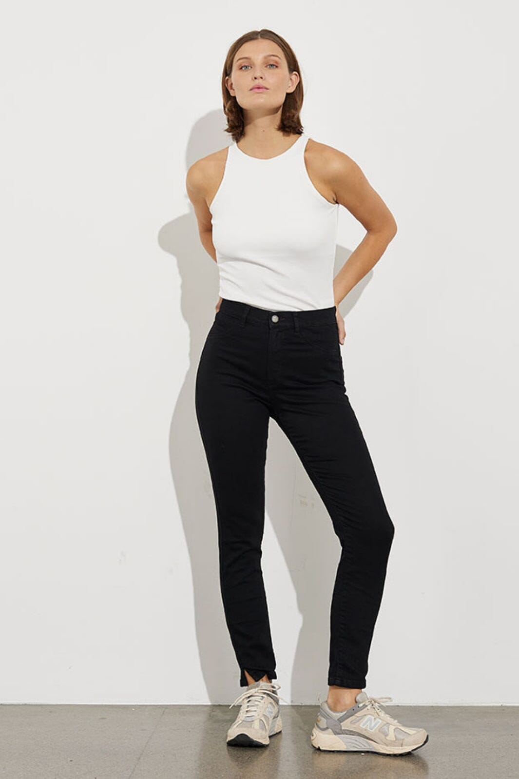 Klassiske højtaljede skinny jeans fra Global Funk, der former sig smukt efter kroppen. De er lavet i et komfortabelt stretchningsmateriale og lukkes med både knap og lynlås. Fås i flere farver.