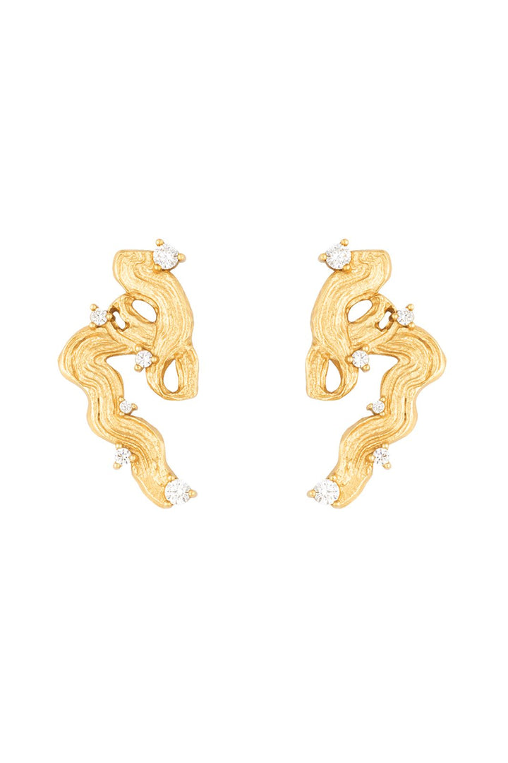 Söljörhängen från House Of Vincent med molnformad topp och droppformad pärla. Den texturerade ytan på toppen ger örhängena ett konstnärligt uttryck.
