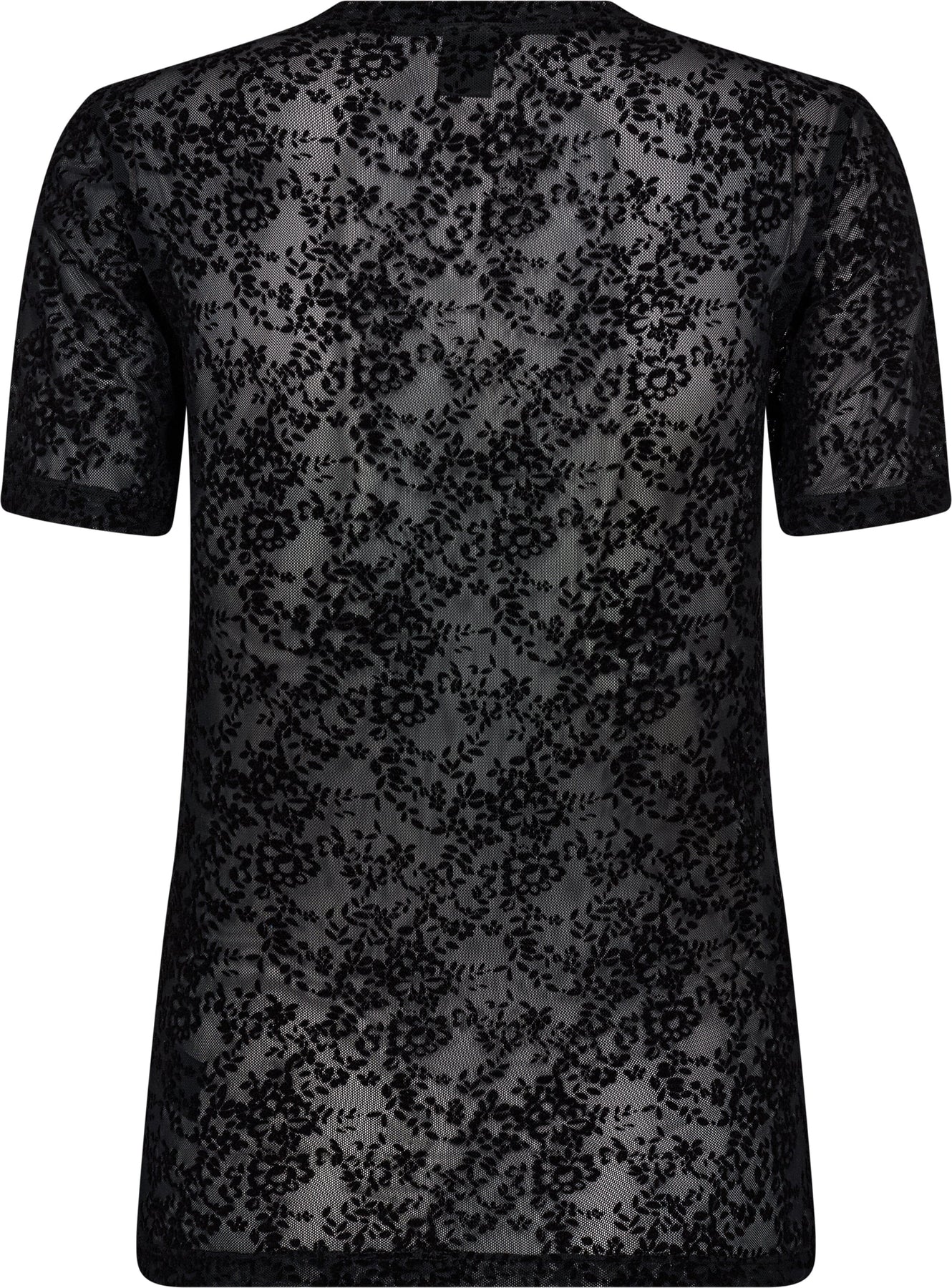 Svart spets-t-shirt från Hype The Detail med genomskinligt blommönster. Den har korta ärmar och en åtsittande passform.