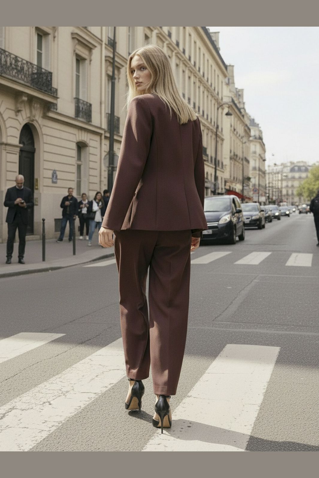Bruna kostymbyxor från Hypedrop med hög midja och barrel-fit passform. Byxorna har knapp- och dragkedjestängning samt bälteshällor vid midjan och praktiska sidofickor.