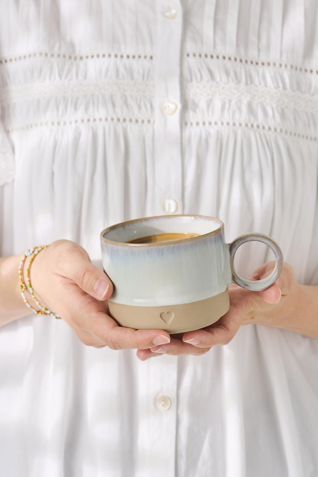 Krus m/hank Heart mat brunt ler m/lyseblå kant 290 ml
