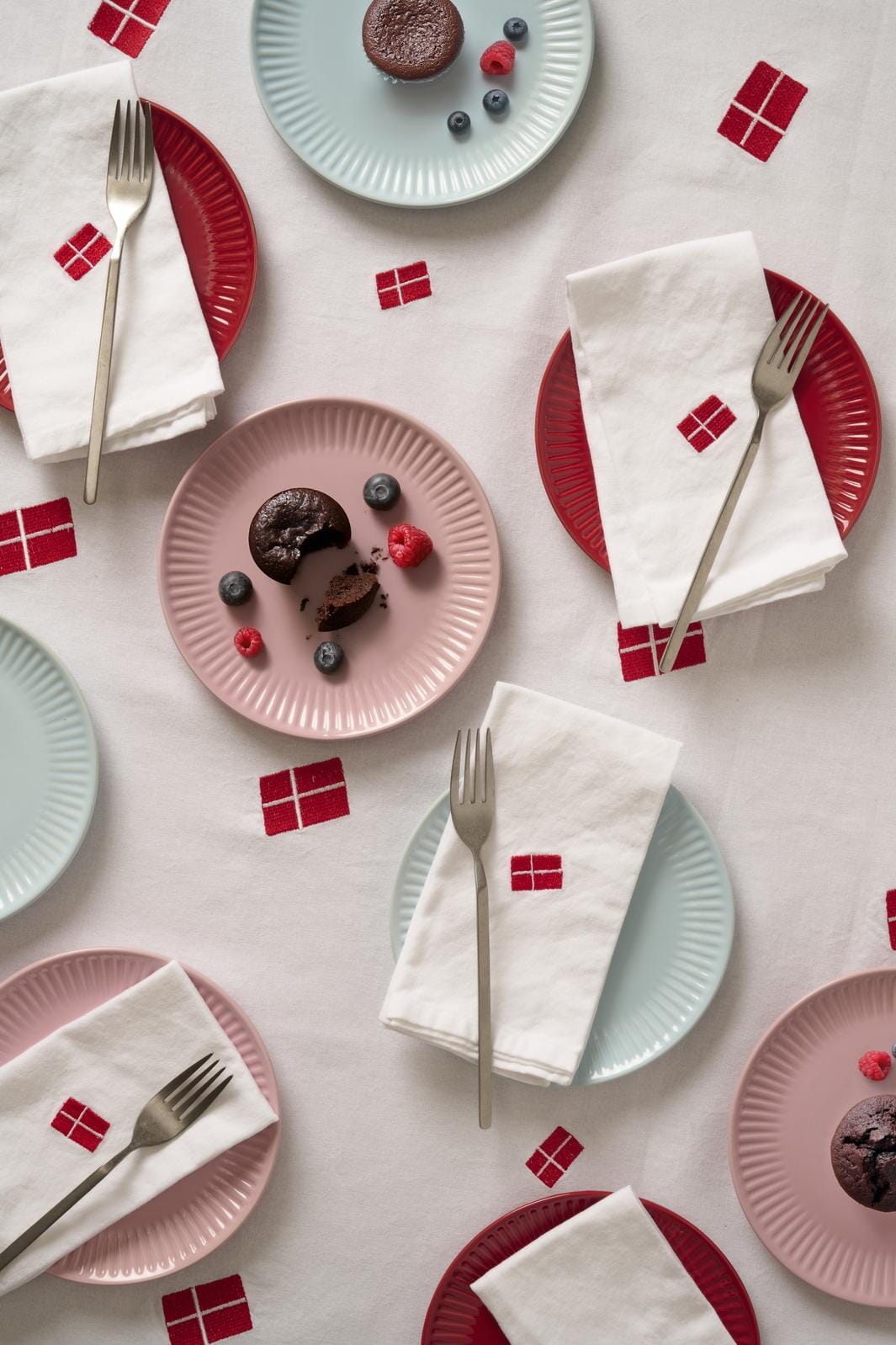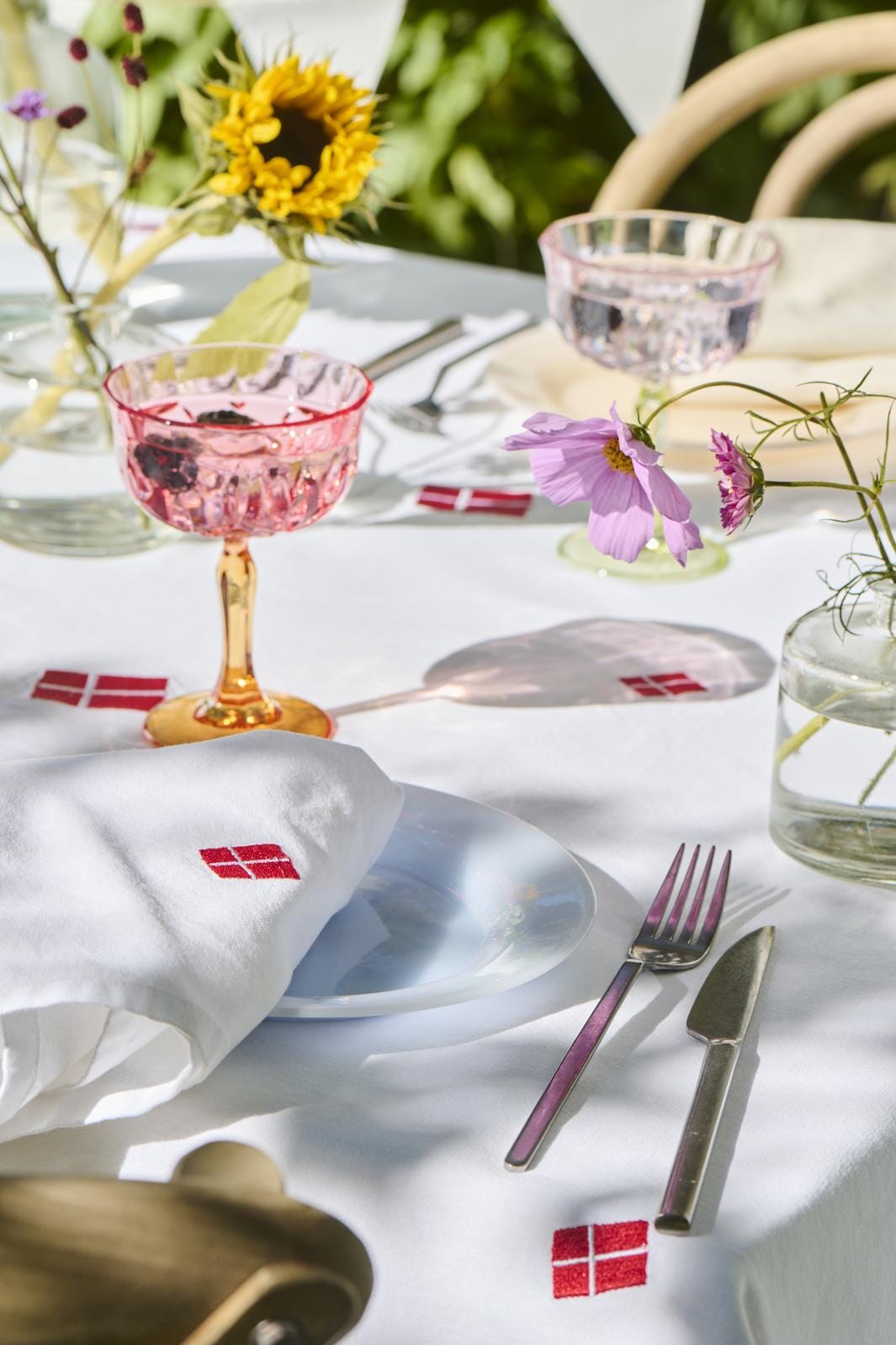 Ib Laursen Stofserviet m/dansk flag hvid Bomuld, Polyester