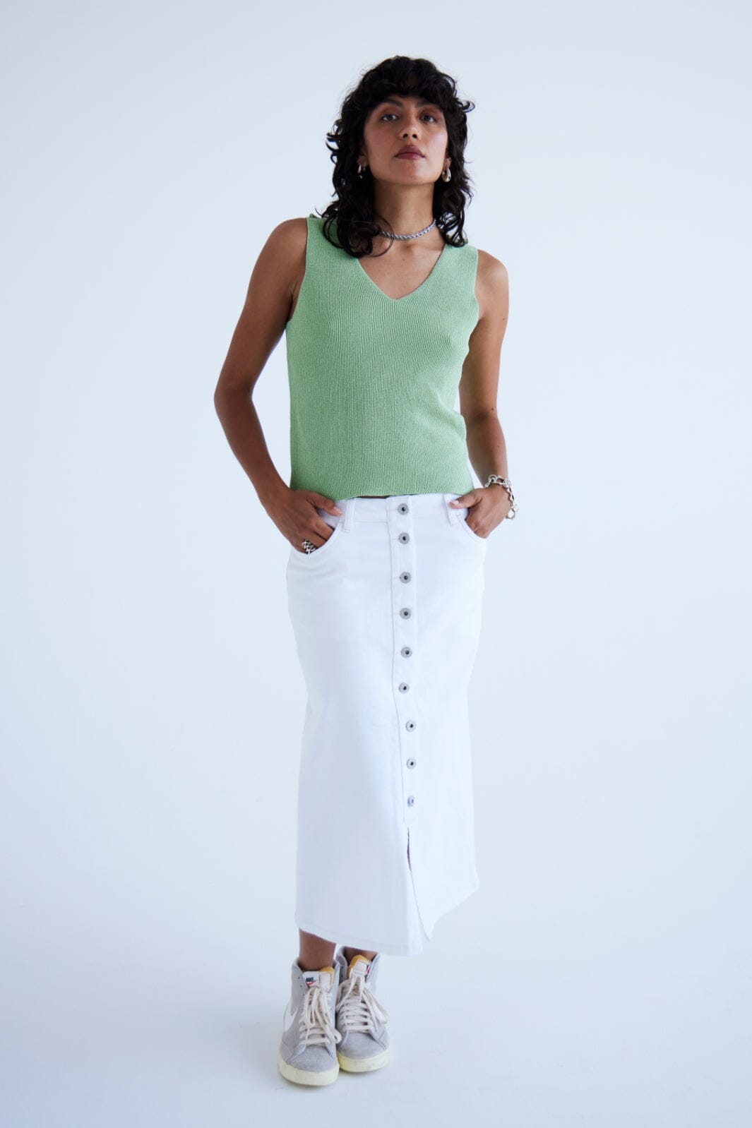 Den enkla designen gör den till en mångsidig plagg som kan stylas om och om igen med favorittoppar och accessoarer.