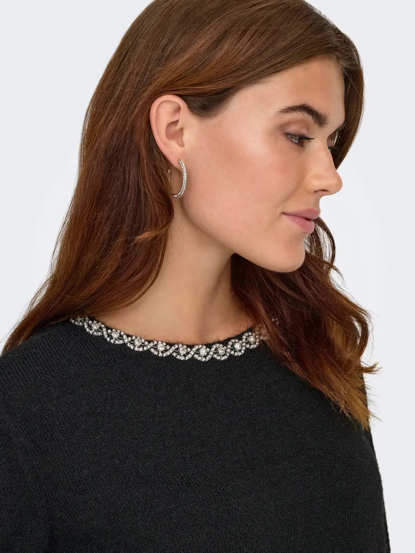 JDY Jdyalva Life L/S Embellish Pullover Knt Färg: 4907581 Black Silver Embellishment